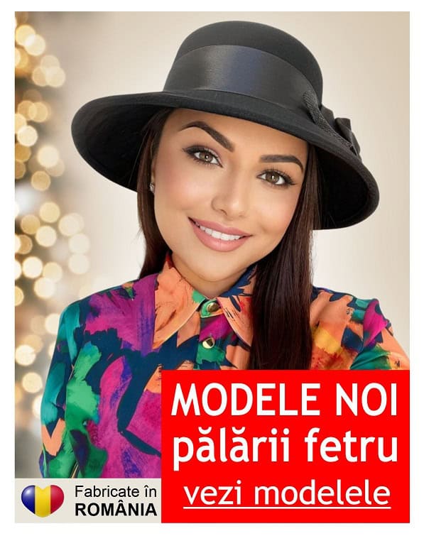 Palarie dama din fetru lux tip toca MISS MAGIC (NEGRU) - marime unica, reglabila