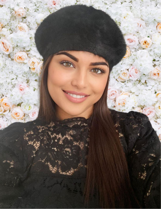 Bereta lux din lana fina si pufoasa de Angora - Princess (NEGRU) - marime universala