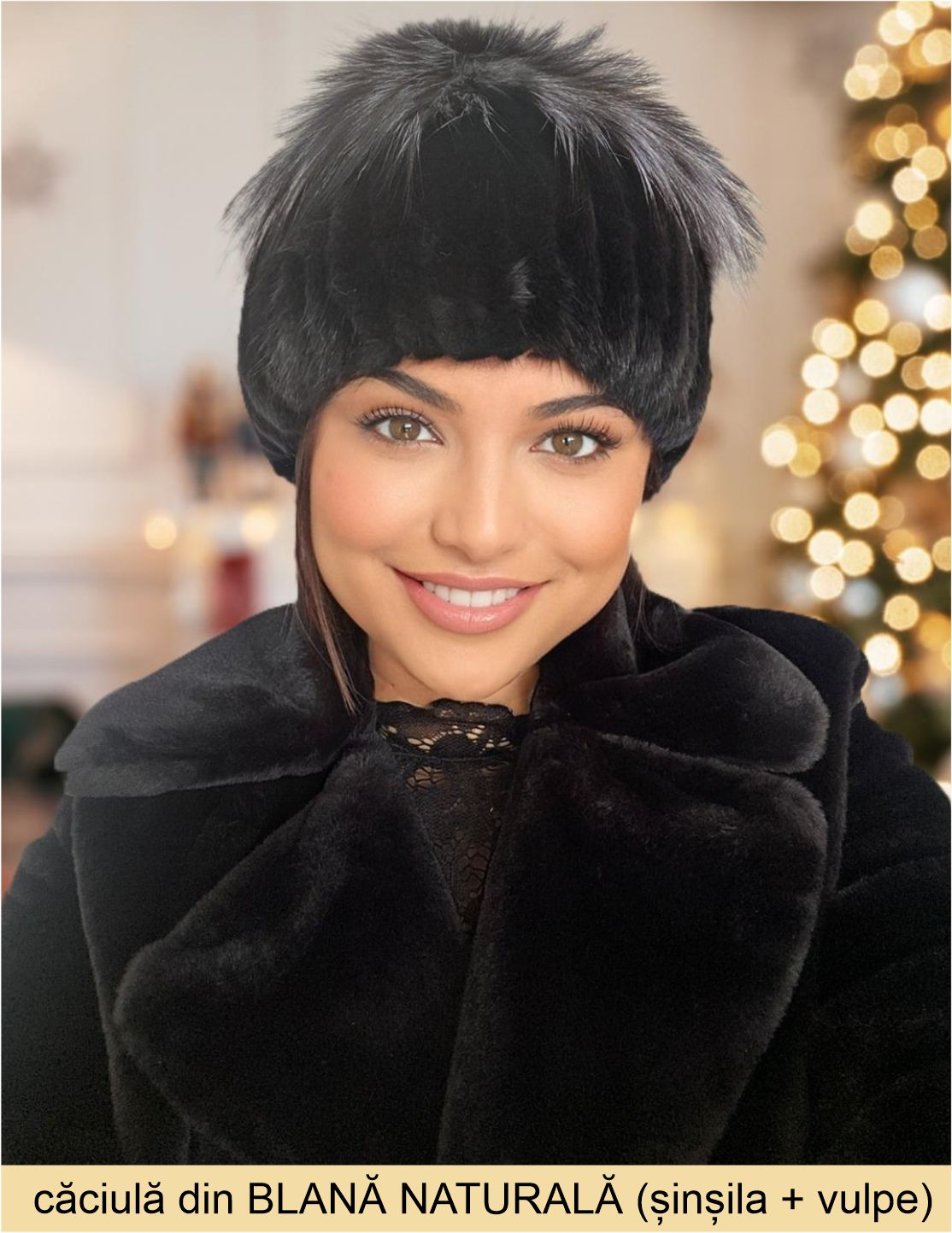 Si tu te poti bucura de o caciula de blana de lux alegand noul model de caciula din blana naturala Lady Lux, o caciula din blana NEAGRA de sinsila in partea de jos si ciucure elegant din blana de vulpe in partea de sus, un model deopotriva frumos si calduros (cu captuseala groasa pe interior) o caciula din blana de lux ce va da un aer de eleganta si rafinament aparte oricarei tinute - marime UNIVERSALA