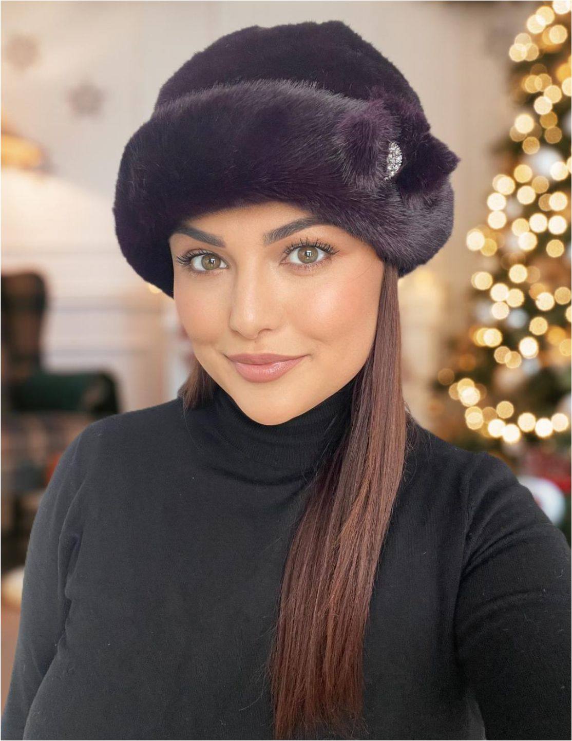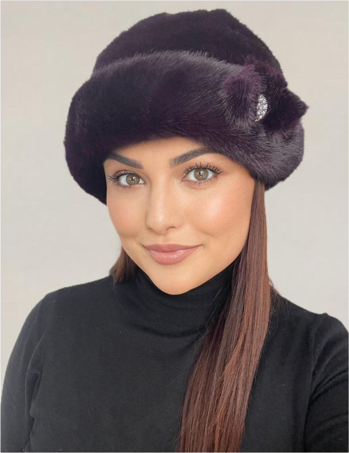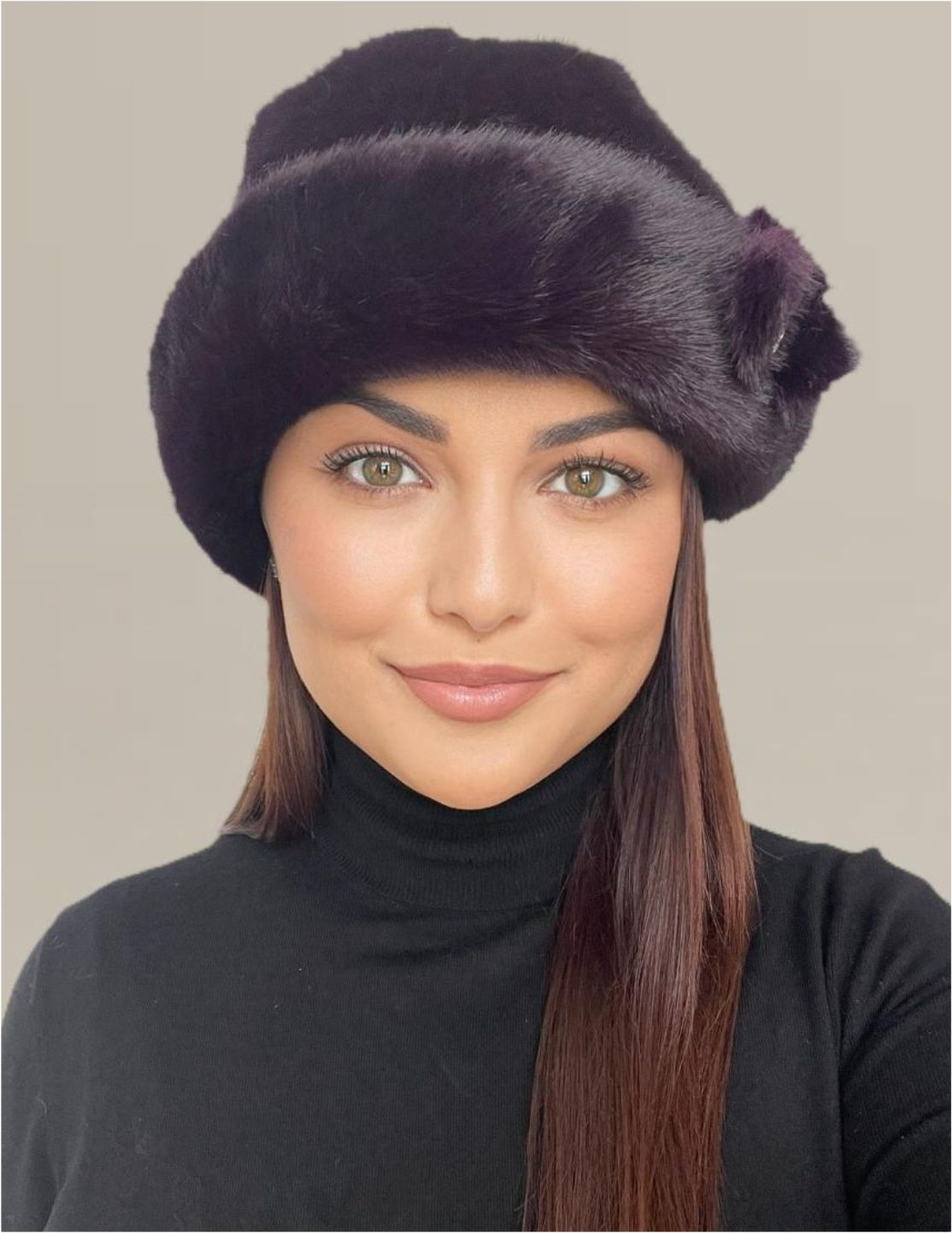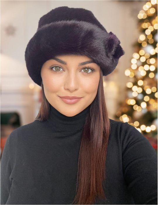 Caciula eleganta din blana LADY LUX (VIOLET PRUNIA) - marime UNICA, REGLABILA