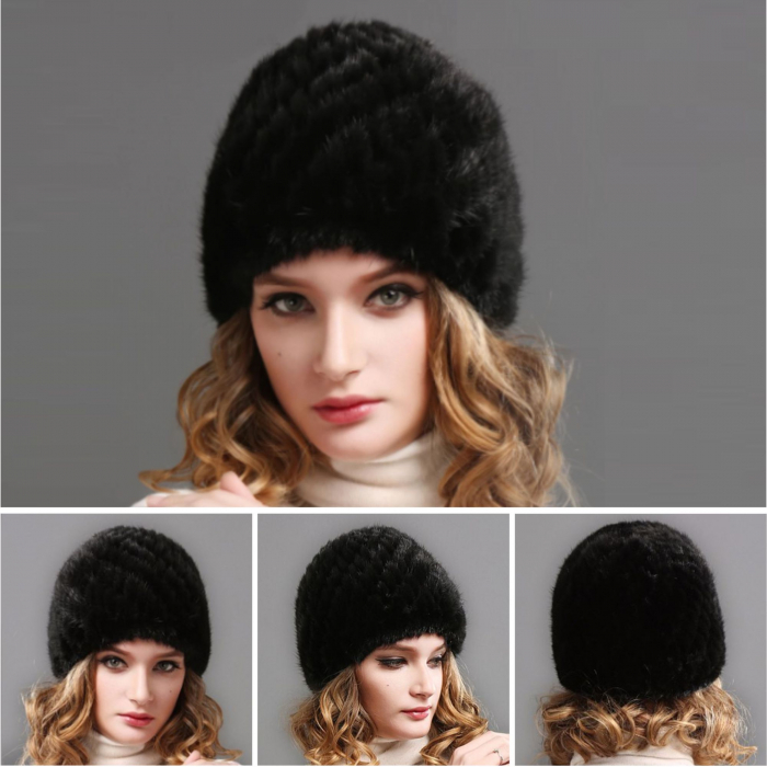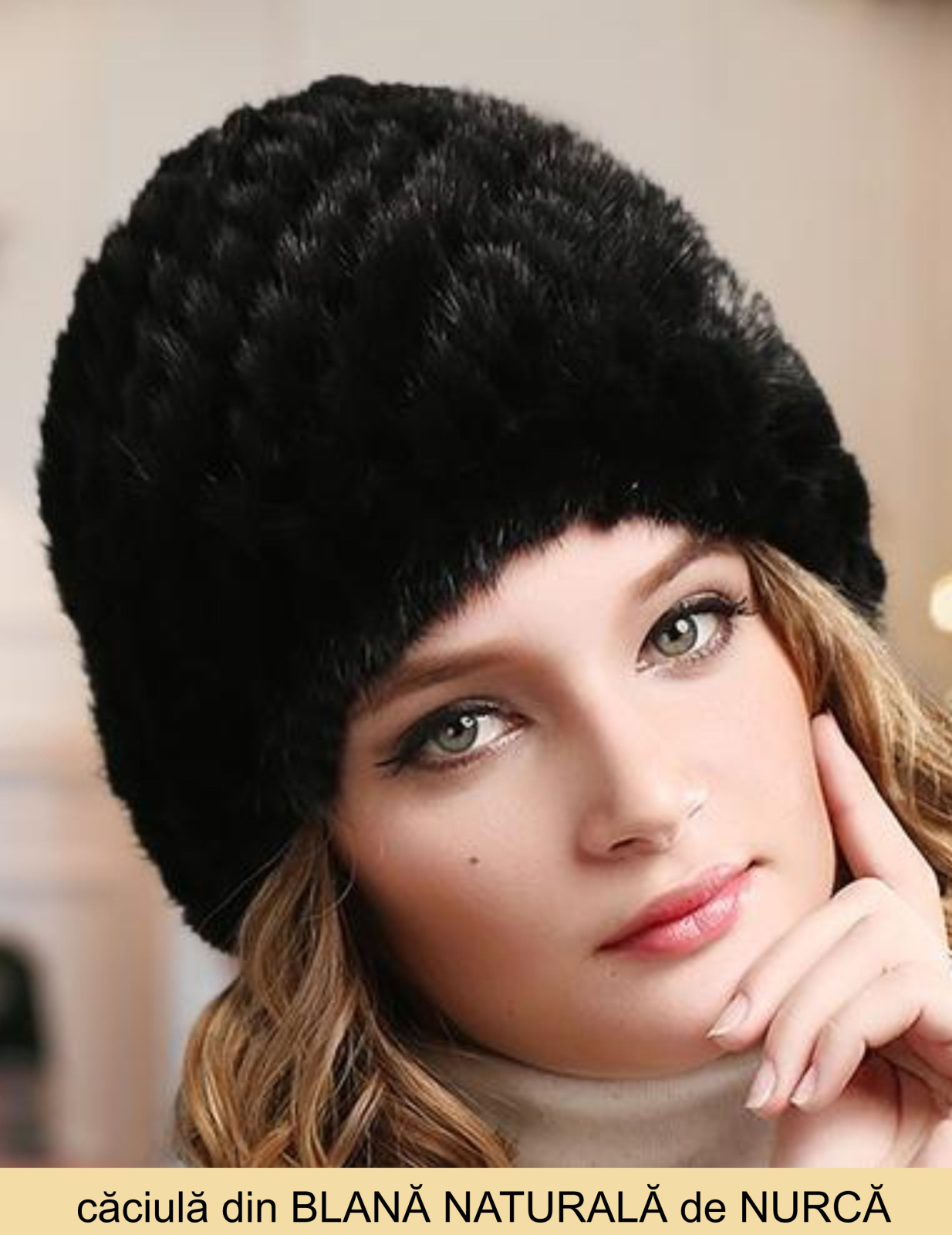 - Model: caciula de blana de nurca, model tricotat elastic pe interior