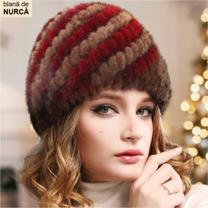 Si tu te poti Si tu te poti bucura de o caciula de blana de calitate, eleganta si moderna alegand noul model de caciula de blana de nurca Princess Lux, un model deosebit cu dungi elegante in GRENA si MARO, deopotriva frumos si calduros (cu captuseala groasa pe interior) o caciula de blana deosebit de rafinata, ce va da un aer de eleganta si rafinament aparte oricarei tinute - marime universala