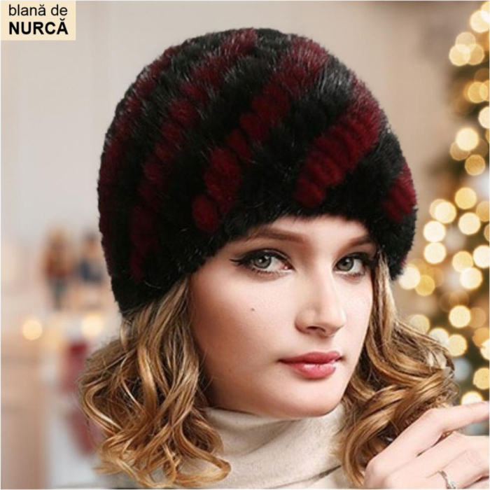 Si tu te poti Si tu te poti bucura de o caciula de blana de calitate, eleganta si moderna alegand noul model de caciula de blana de nurca Princess Lux, un model deosebit cu dungi elegante in GRENA si NEGRU, deopotriva frumos si calduros (cu captuseala groasa pe interior) o caciula de blana deosebit de rafinata, ce va da un aer de eleganta si rafinament aparte oricarei tinute - marime universala