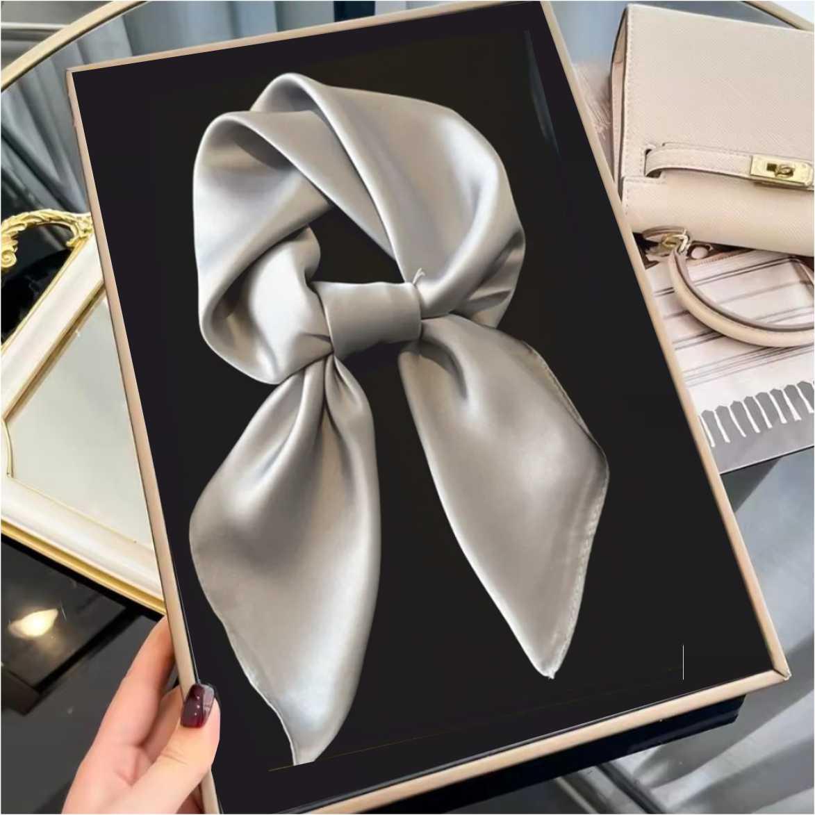 Esarfa eleganta de dama din matase, 60*60 cm, GRI
