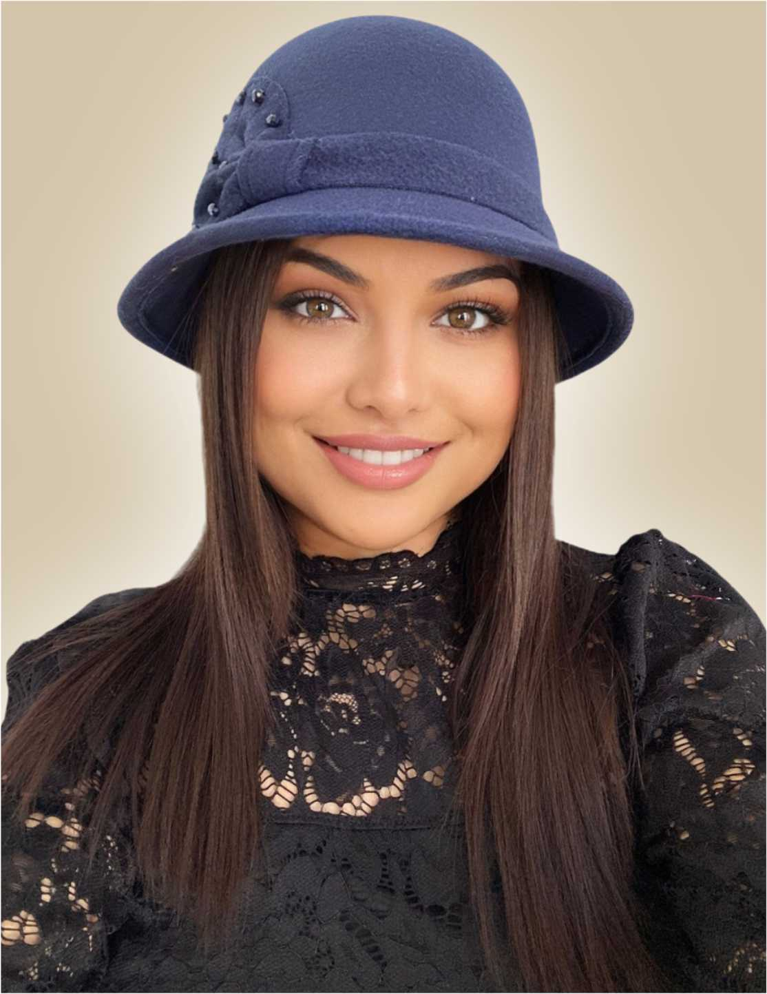 Palarie dama cu boruri delicate MISS COCHETTE (BLEUMARIN) - marime unica, reglabila
