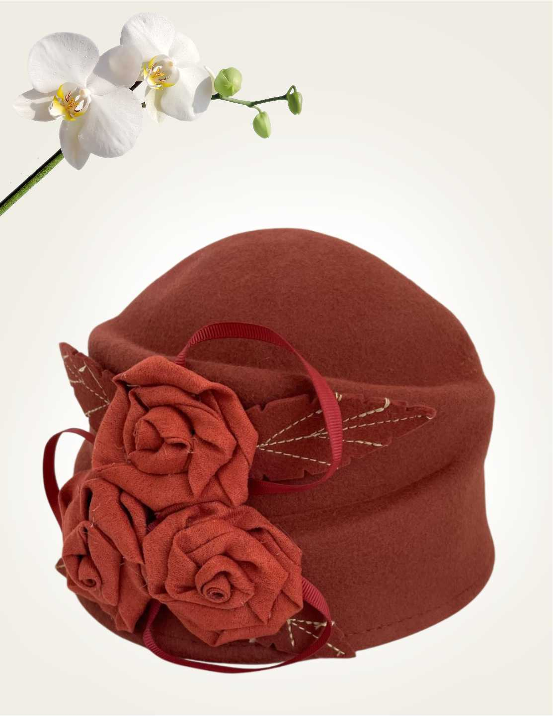 Palarii dama tip toca cu accesorii florale ARIANA (CARAMIZIU) - marime unica