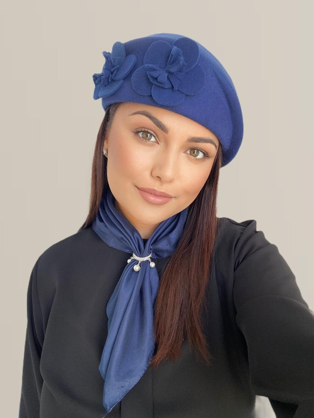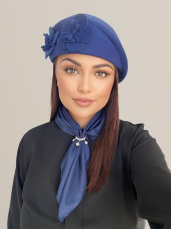Palarie dama toca pe colt REGINA CHIC + esarfa CADOU (ALBASTRU) - marime unica, reglabila