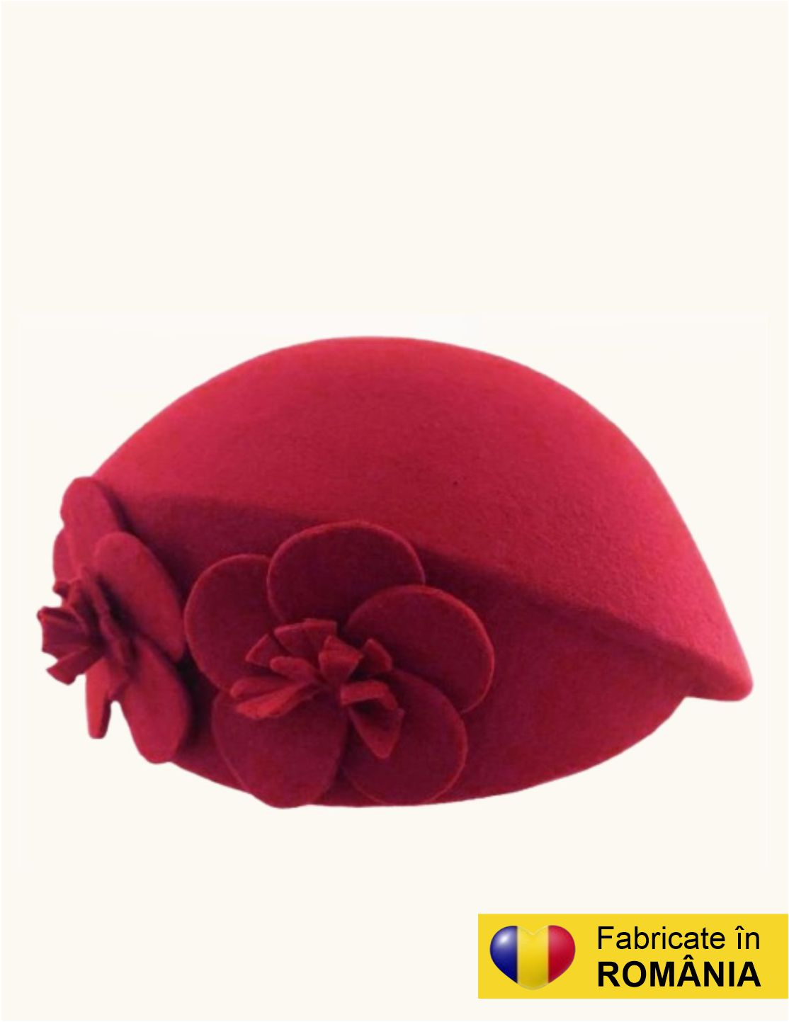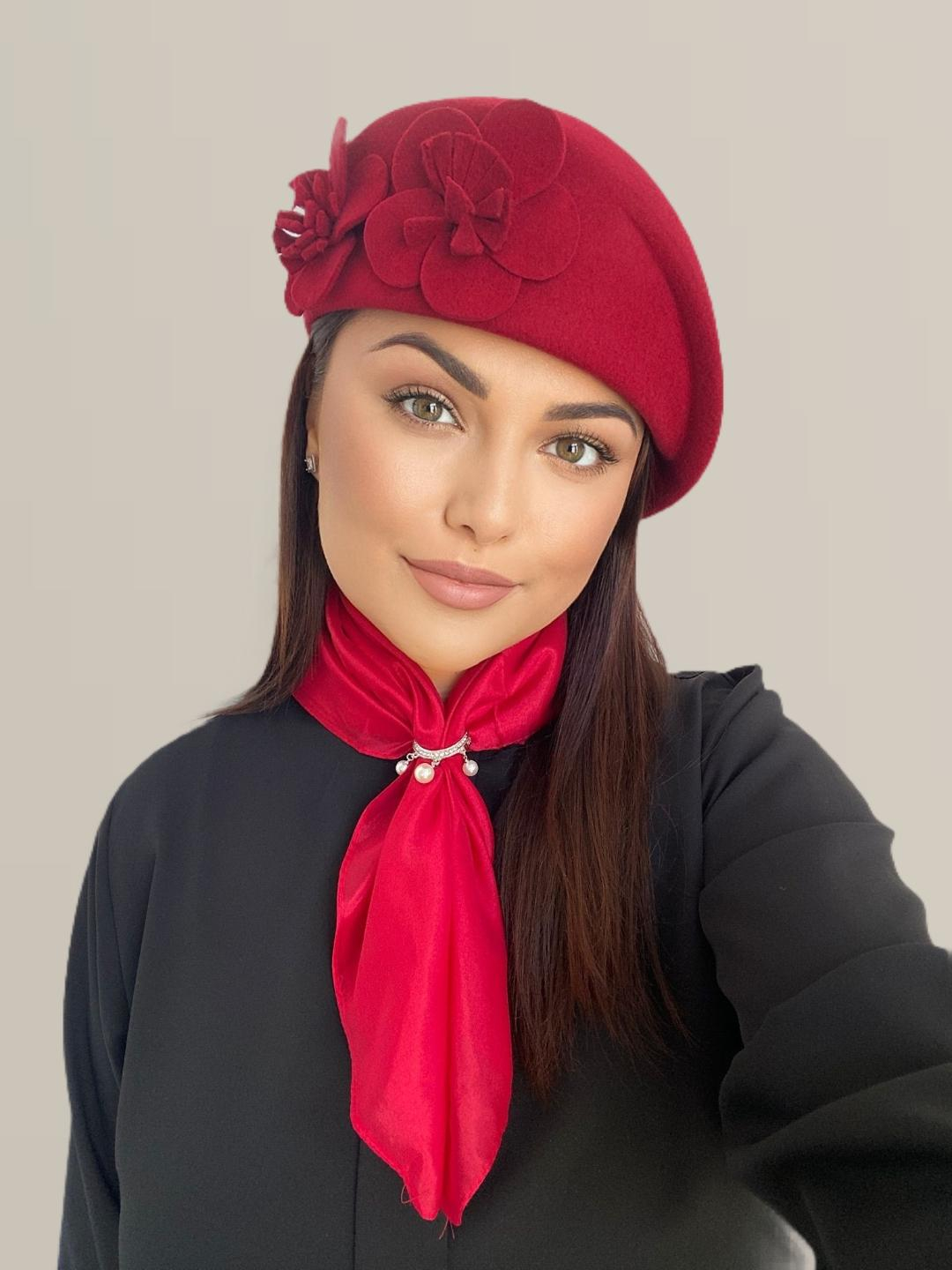 Palarie dama toca pe colt REGINA CHIC + esarfa CADOU (ROSU) - marime unica, reglabila
