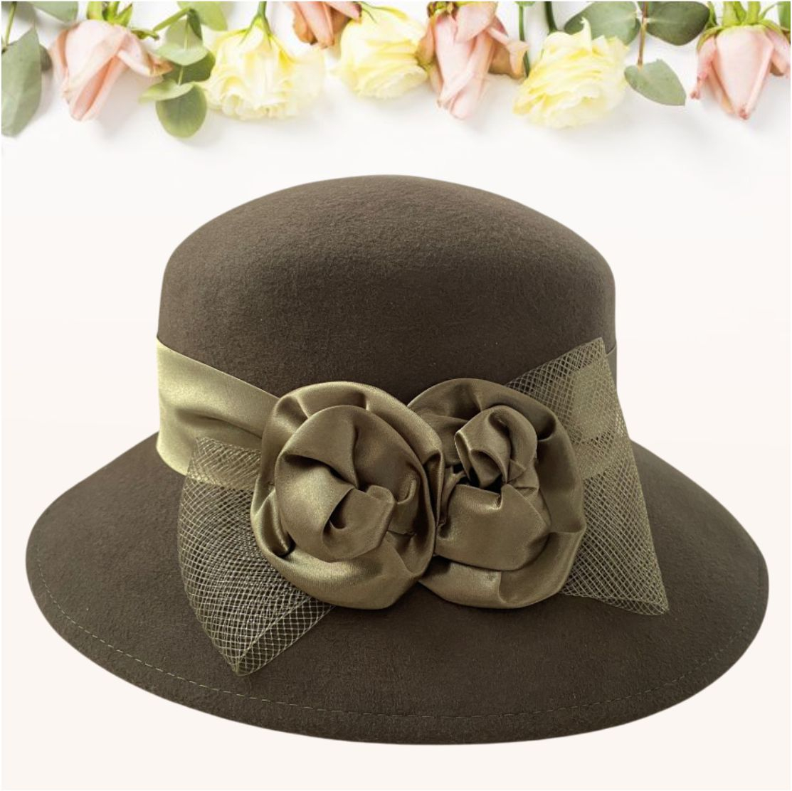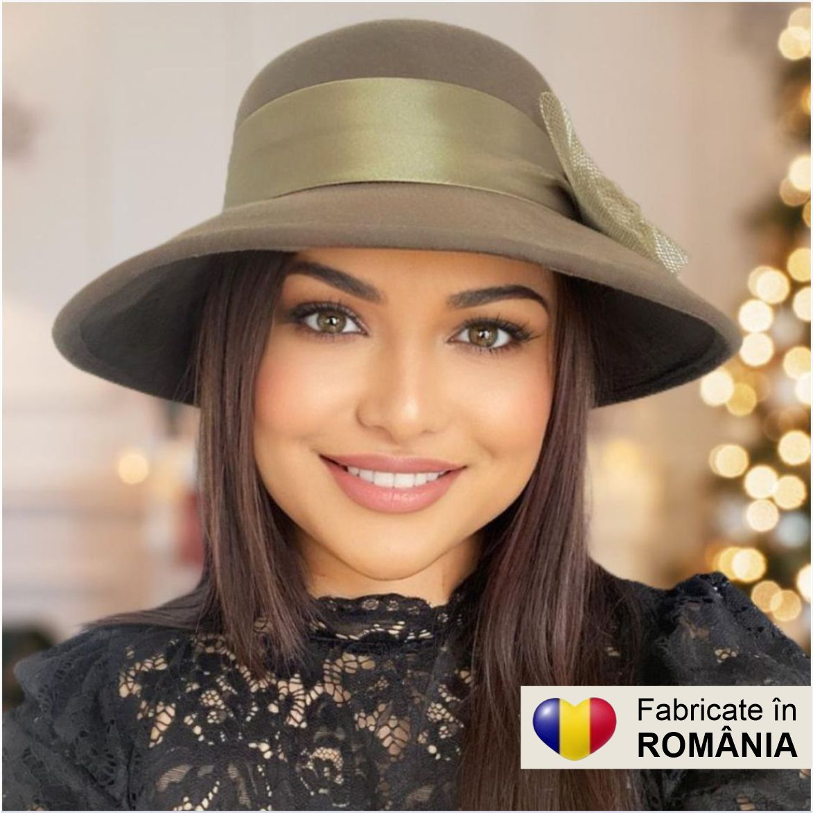 Fabricate in ROMANIA Si tu te poti bucura de o palarie de dama deosebit de eleganta si de calitate alegand noul model Veneția Lux, o palarie deopotriva moderna si calduroasa, din fetru italian de lux 100% lana, in culori distinse, cu boruri elegante in stil italian usor lasate in jos și decor luxuriant cu panglica de satin de jur imprejur, un accesoriu deosebit de rafinat pentru tinutele de zi sau pentru ocazii speciale - marime UNICA, reglabila
