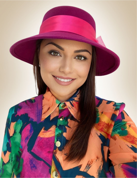 Palarie dama din fetru lux VENETIA LUX (ROZ fucsia) - marime unica, reglabila