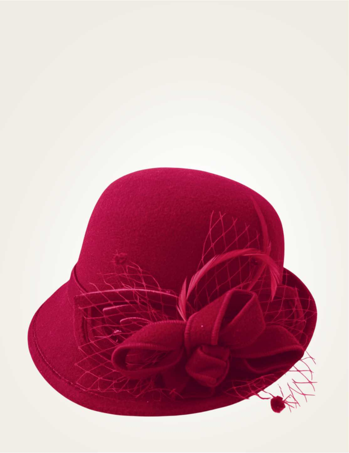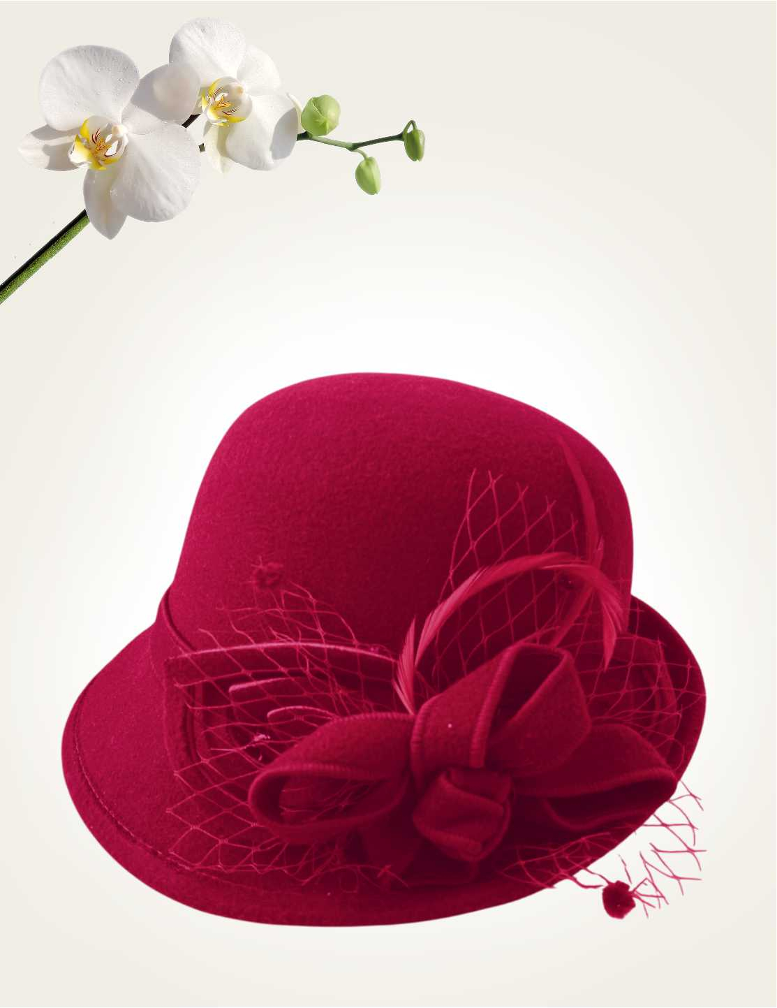 Palarie dama cu boruri mici si decor luxuriant MISS ELEGANCE (ROSU trandafiriu) - marime unica, reglabila