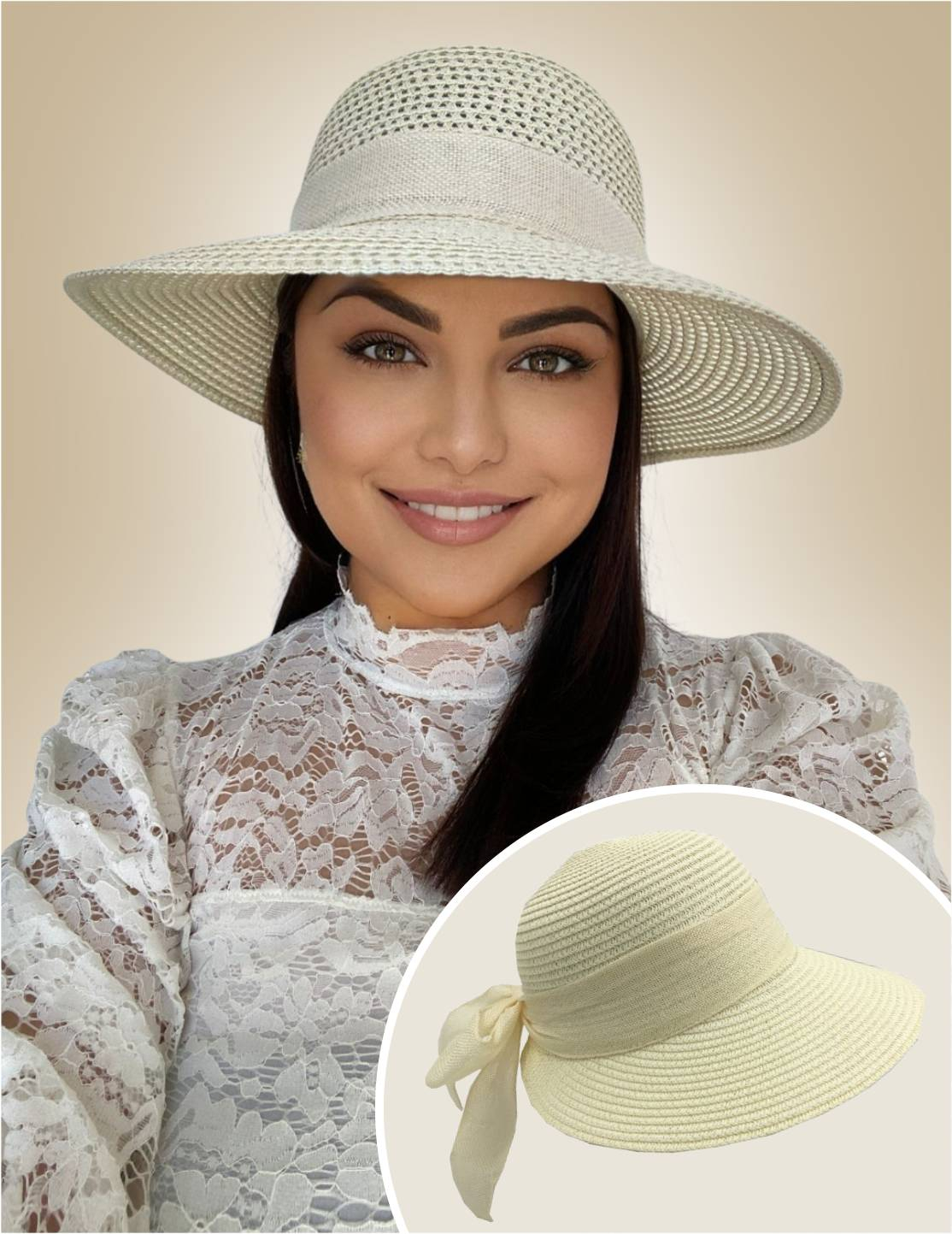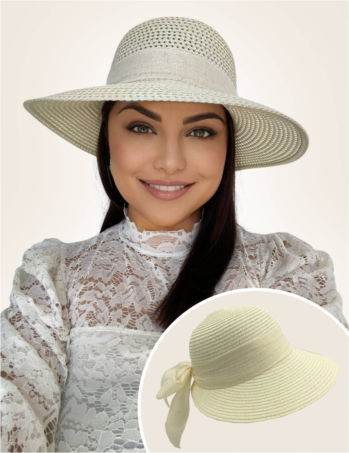 Si tu te poti bucura de o palarie de dama deosebit de rafinata alegand noul model de palarie cu boruri asimetrice tip sepcuta Lorelai Lux, o palarie de vara cu panglica delicata si funda asortata in culoarea palariei, un accesoriu ce va da o nota aparte de stil si eleganta tinutelor tale estivalesau tinutelor chic de zi cu zi -marime unica, reglabila