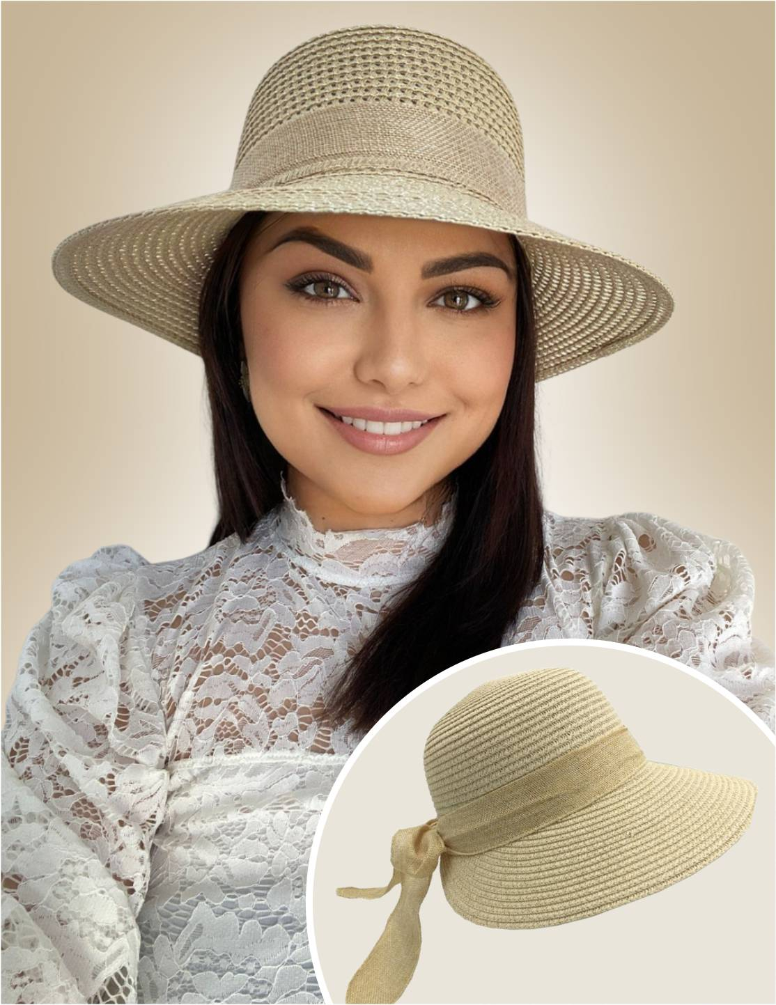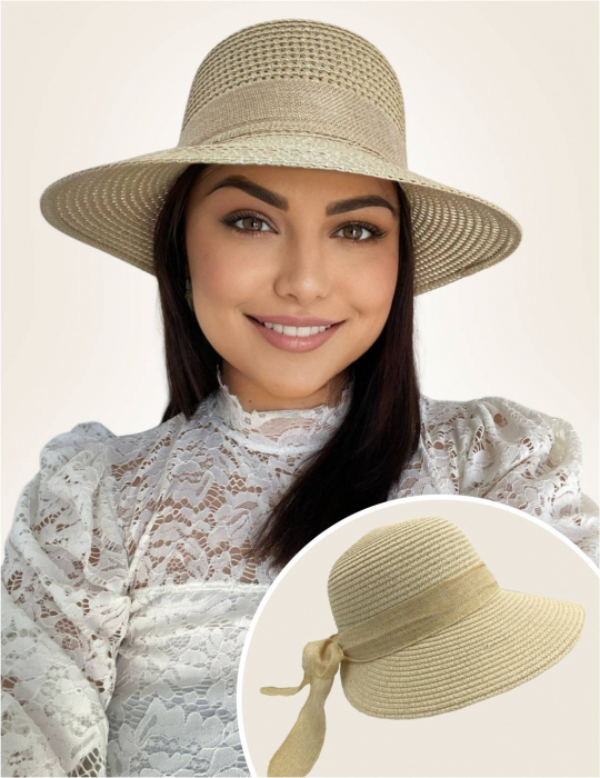 Si tu te poti bucura de o palarie de dama deosebit de rafinata alegand noul model de palarie cu boruri asimetrice tip sepcuta Lorelai Lux, o palarie de vara cu panglica delicata si funda asortata in culoarea palariei, un accesoriu ce va da o nota aparte de stil si eleganta tinutelor tale estivalesau tinutelor chic de zi cu zi -marime unica, reglabila