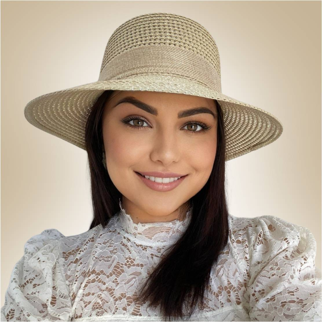 Palarie dama de soare cu boruri asimetrice tip sepcuta Lorelai Lux (CREM inchis) - marime unica, reglabila