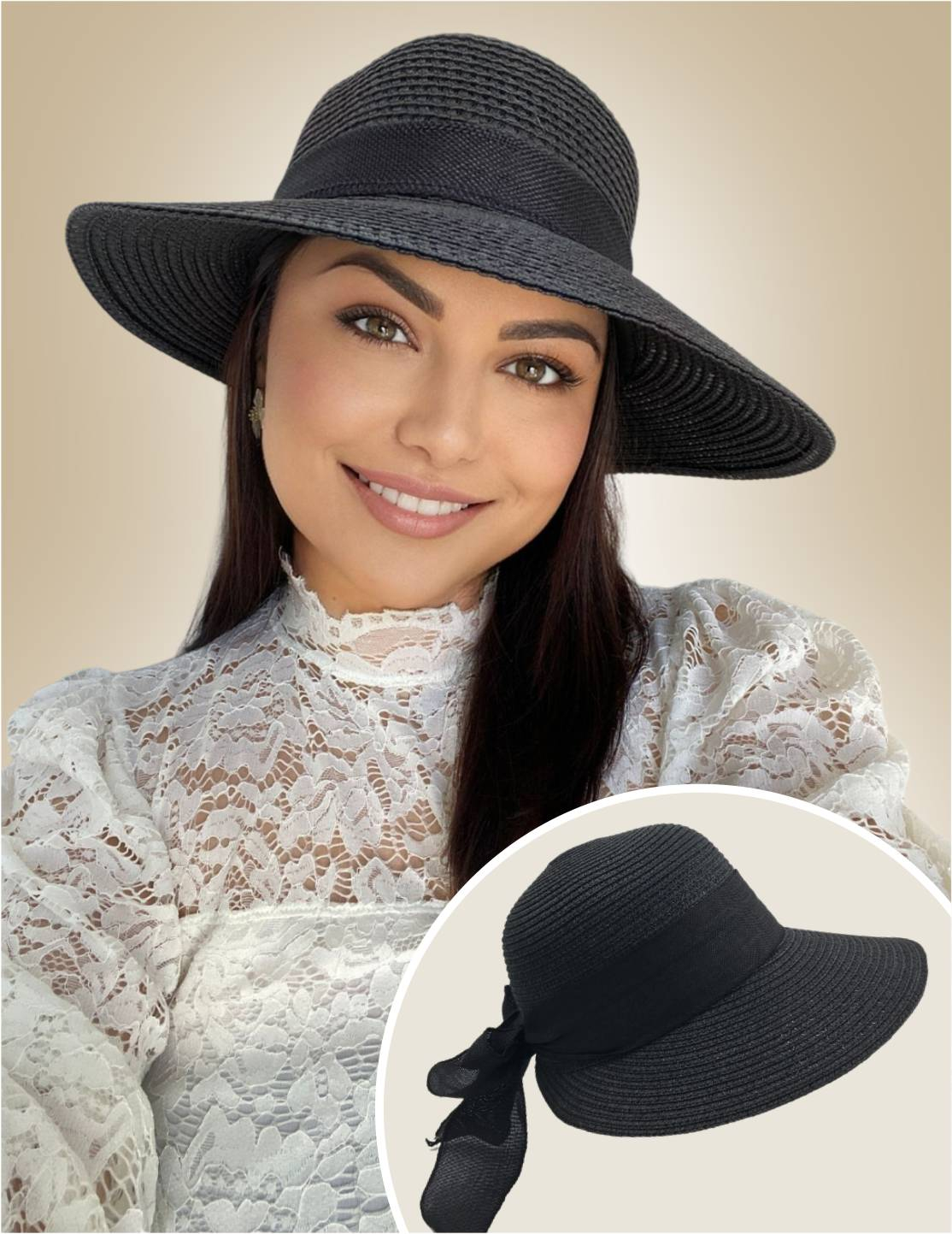 Marime UNICA, reglabila: marimea M - marimea medie uzuala pentru palarii de dama, reglabila cu un snur ascuns in interior, pentru circumferinta capului de la 53 la 58 cm