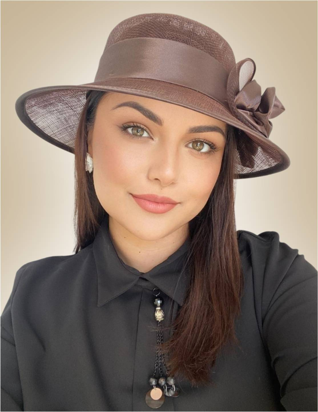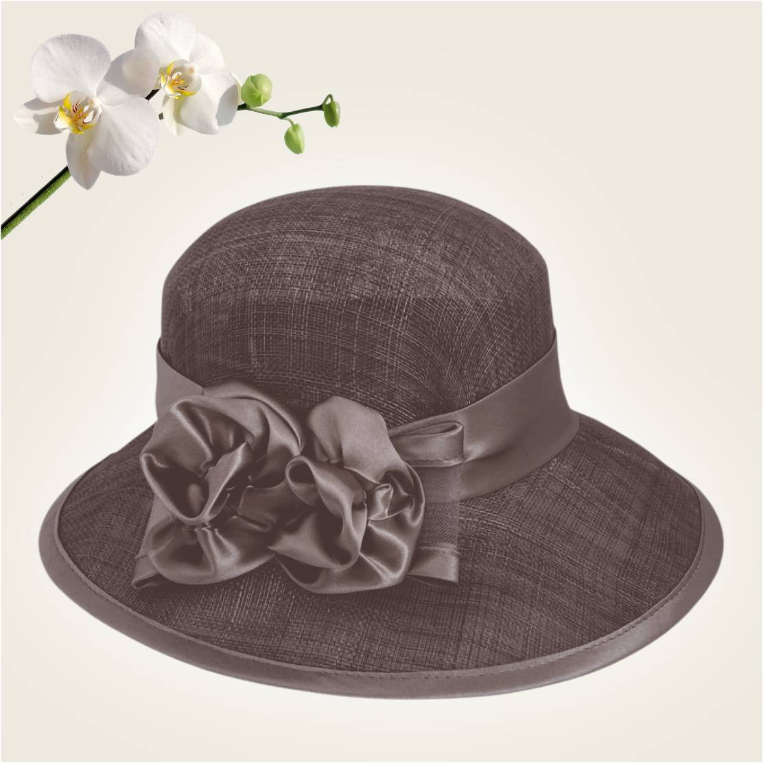 Palarie soare de lux din sisal cu trandafiri din satin LADY ROSE LUX (MARO mahon) - marime unica, reglabila