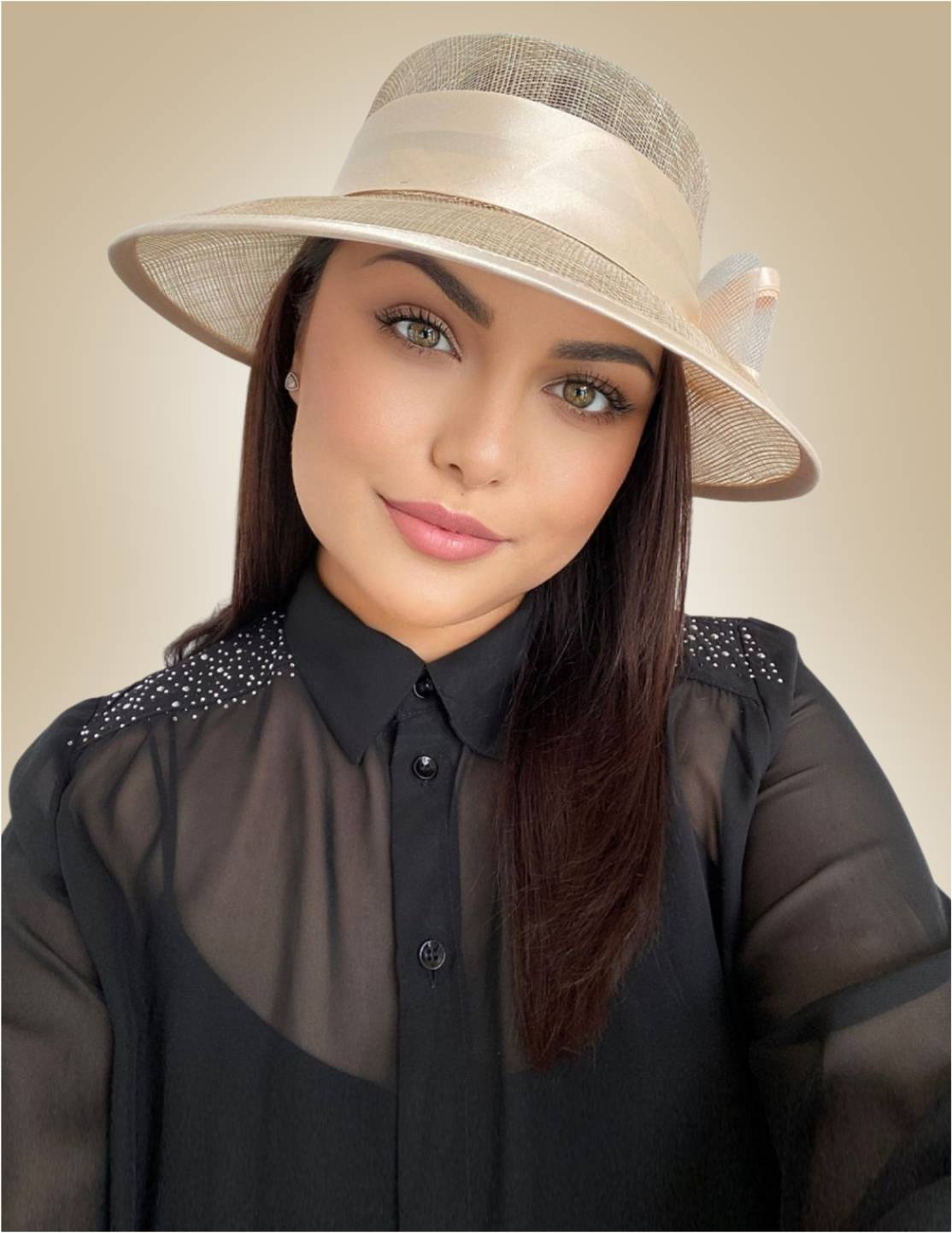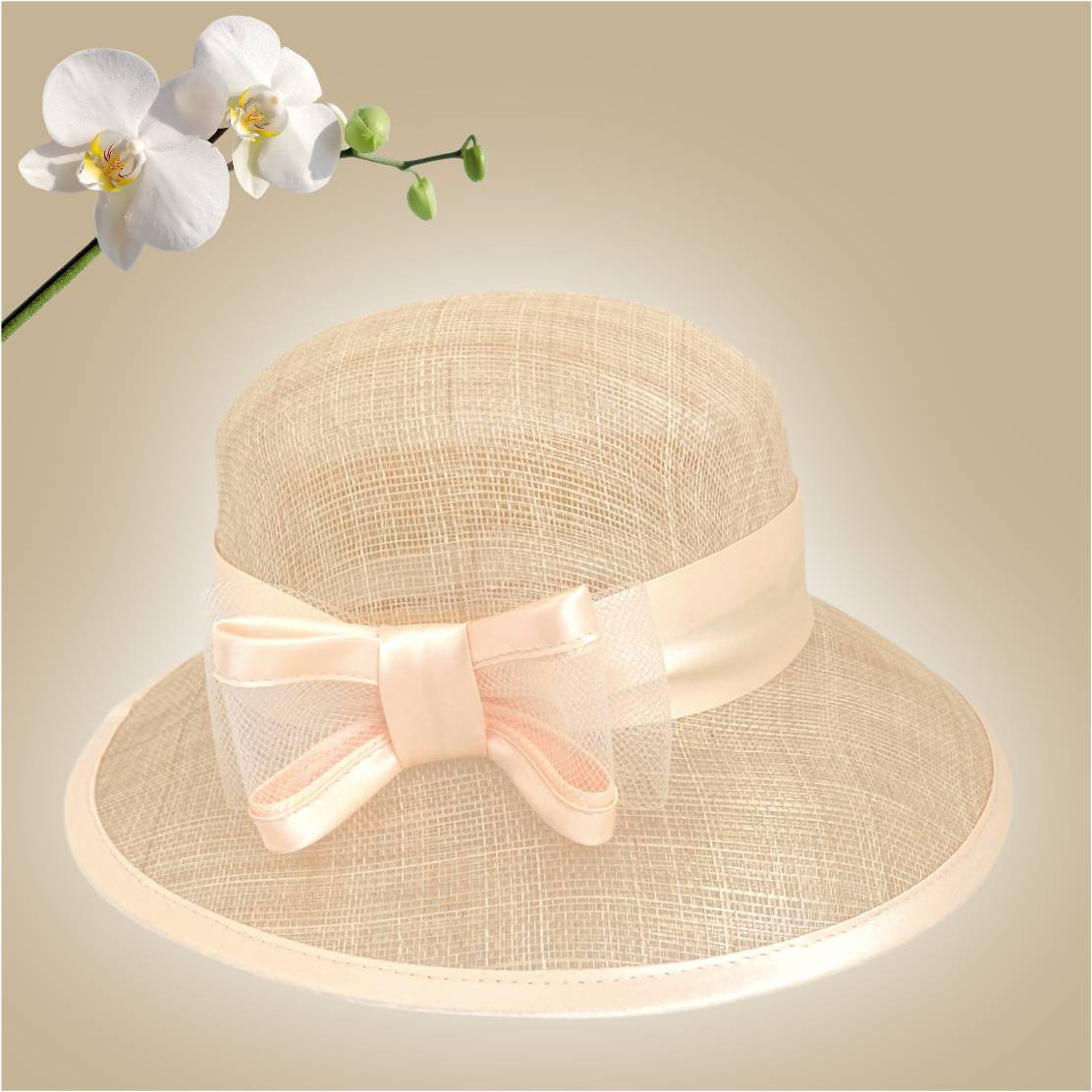Palarie dama lux din sizal cu funda din satin AURORA LUX (CREM sampanie) - marime unica, reglabila