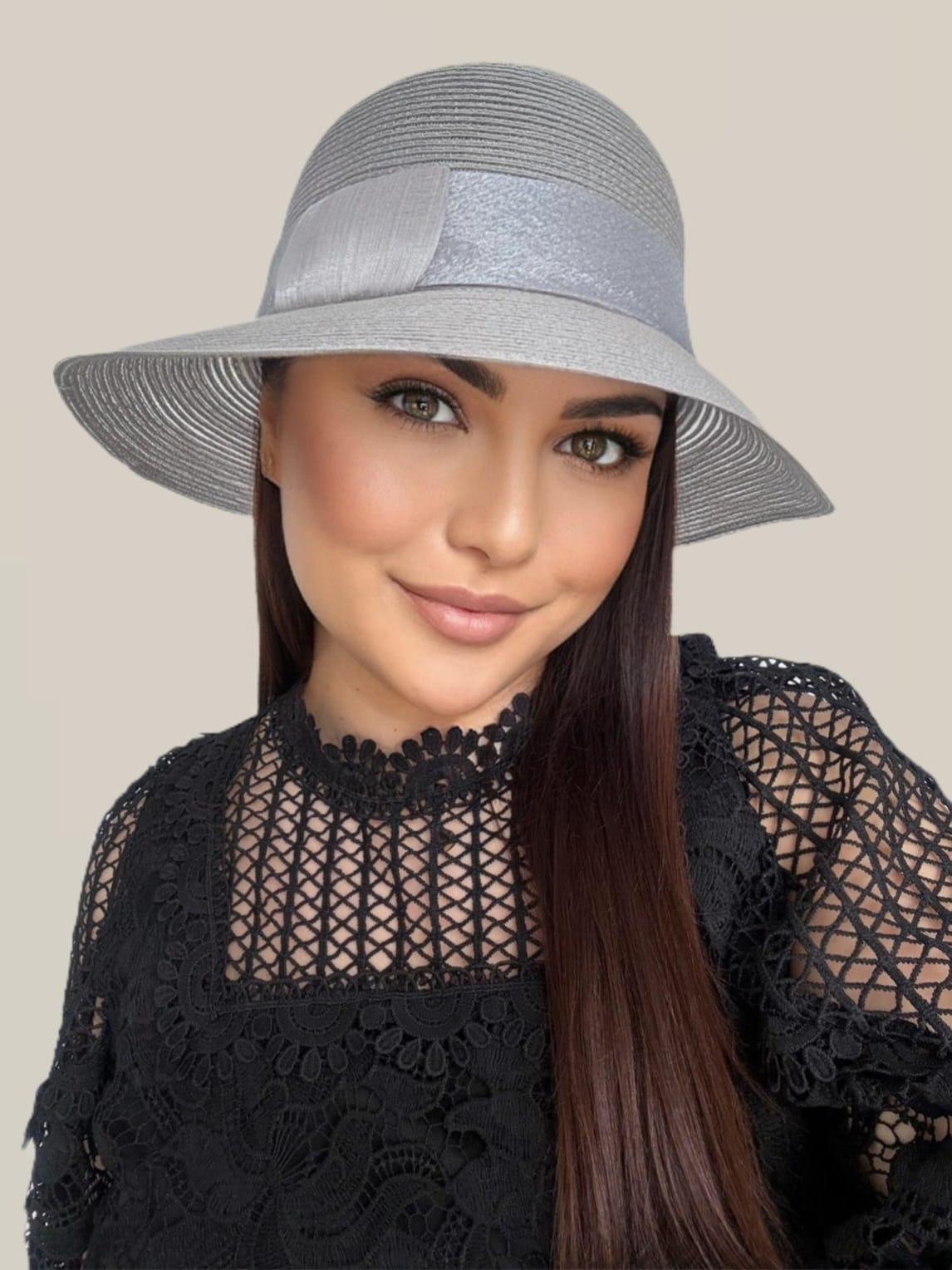 Palarie de soare de lux din organza PALOMA LUX (GRI) - marime unica, reglabila