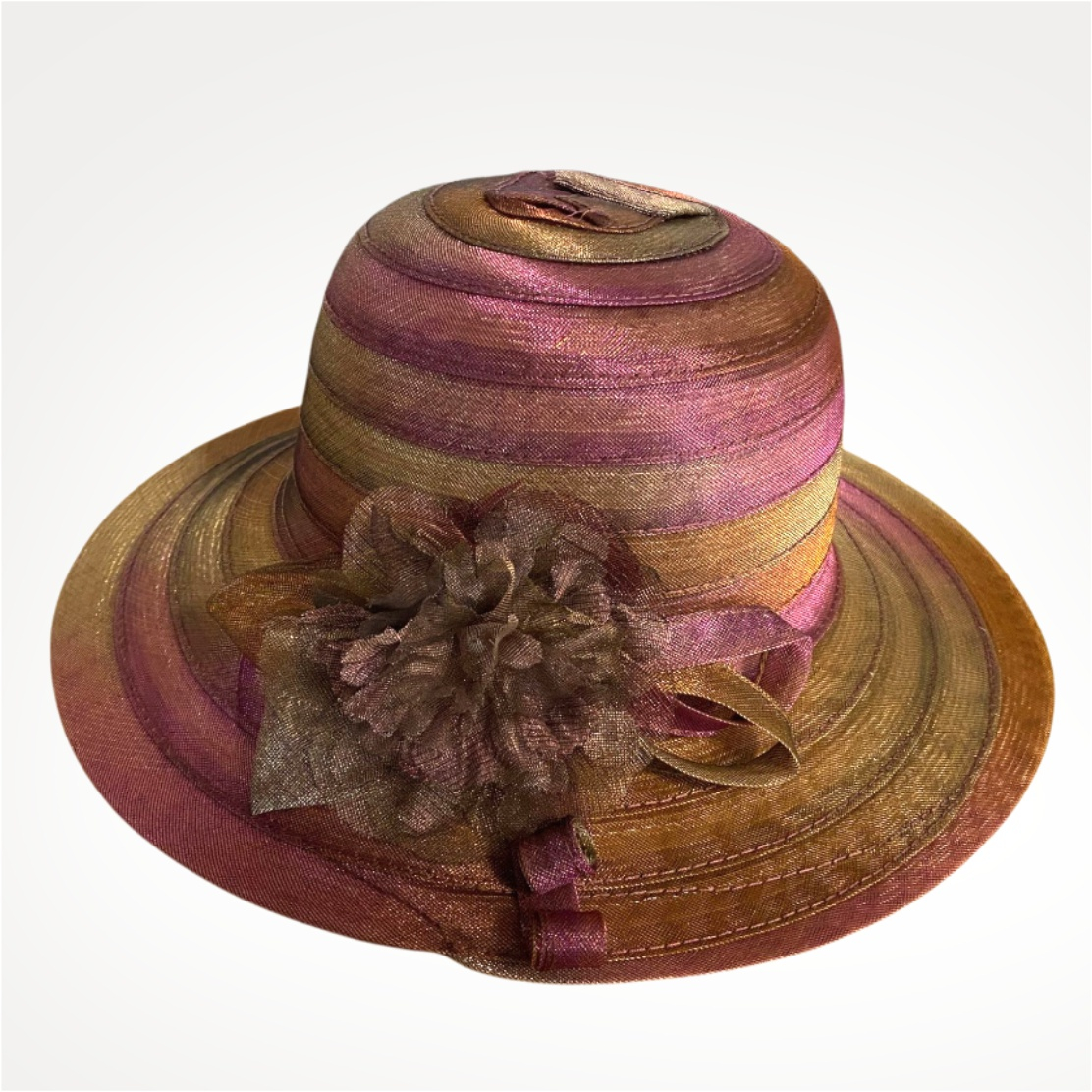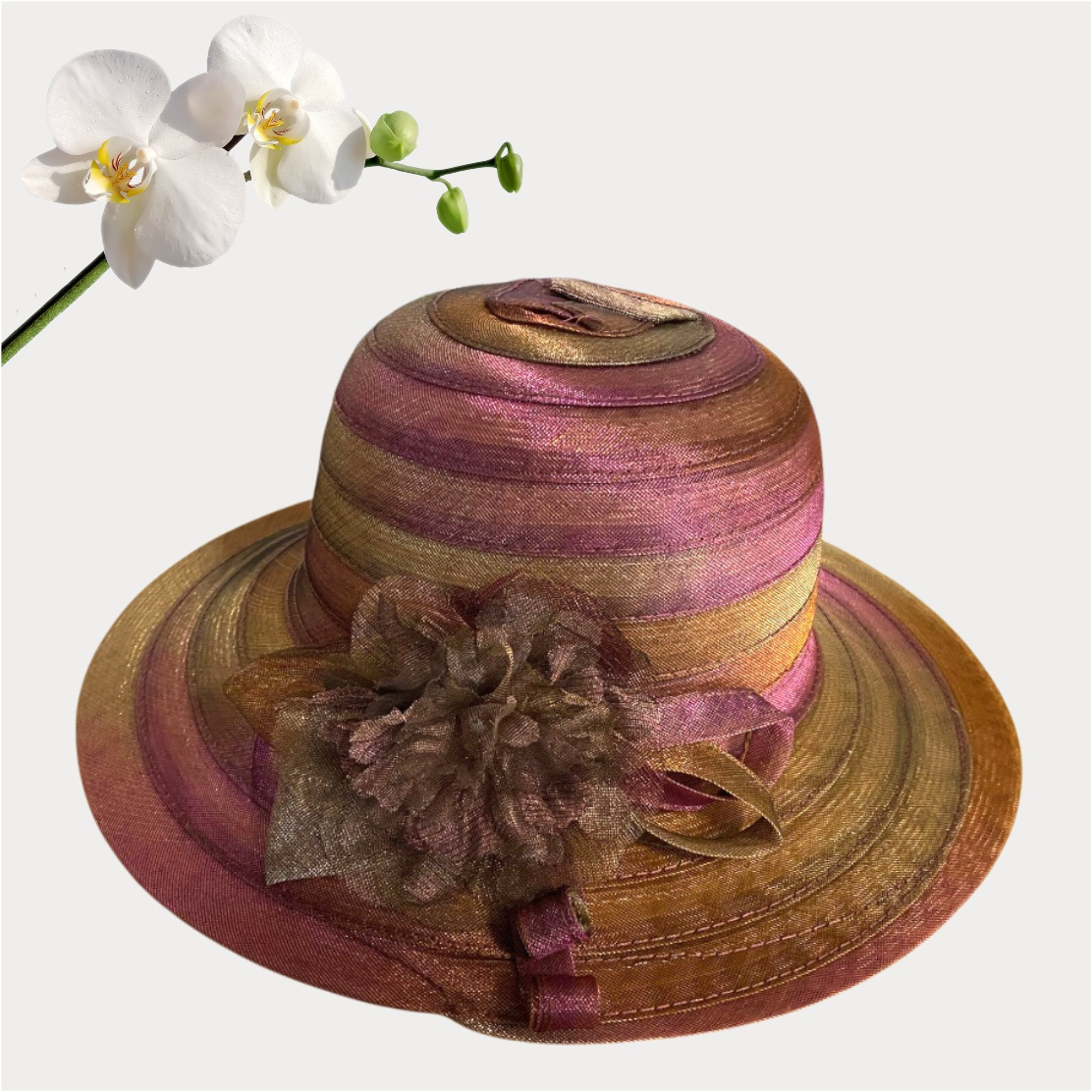 Palarie de soare de lux din organza satinata VENETIA CHIC (MOV+MARO caramiziu) - marime unica, reglabila