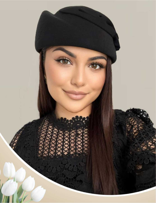 Palarii dama tip toca din fetru lux PARISIENNE LUX (NEGRU) - marime unica, reglabila