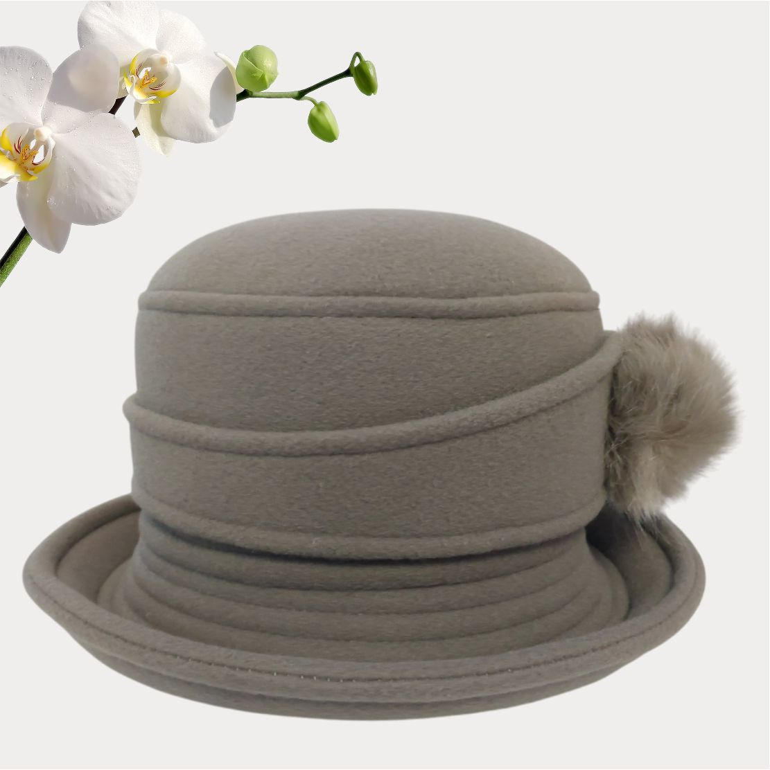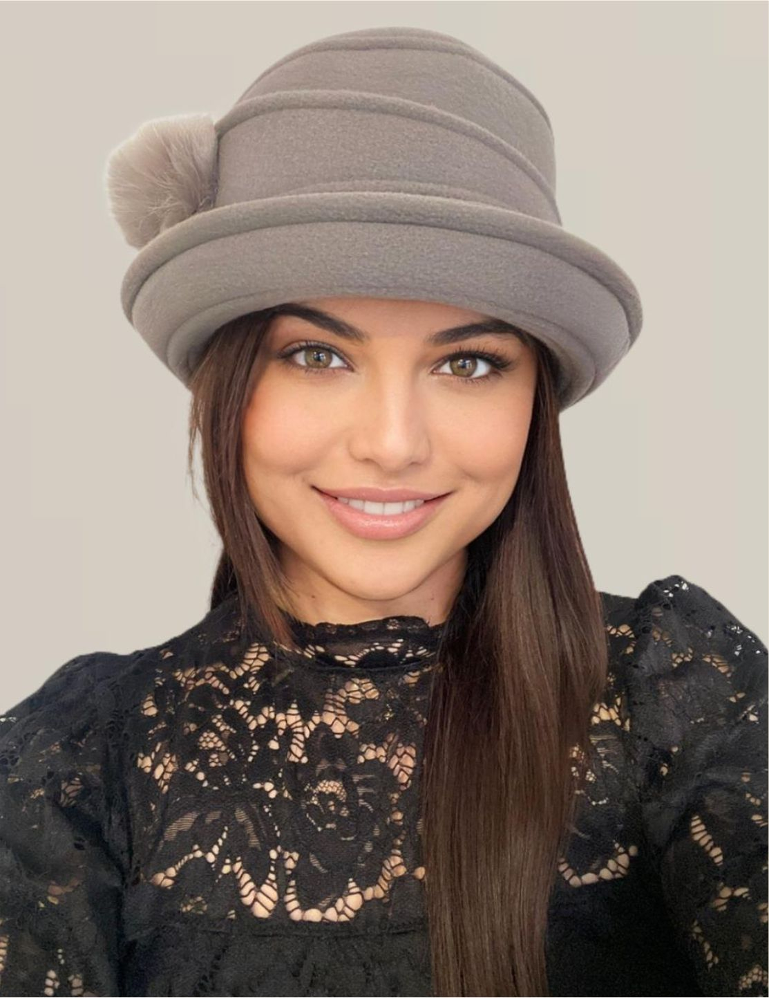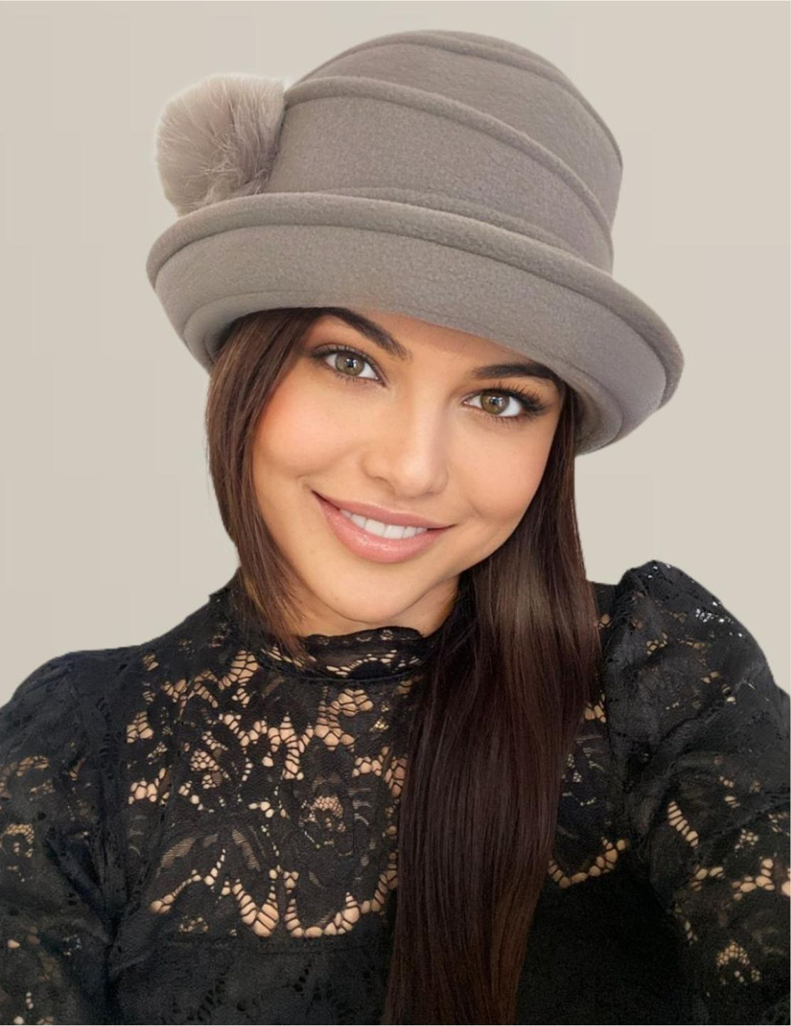 Palarie dama din stofa polar lux cu decor din blanita ARABELLA LUX (GRI) - marimi 54-56 / 56-58