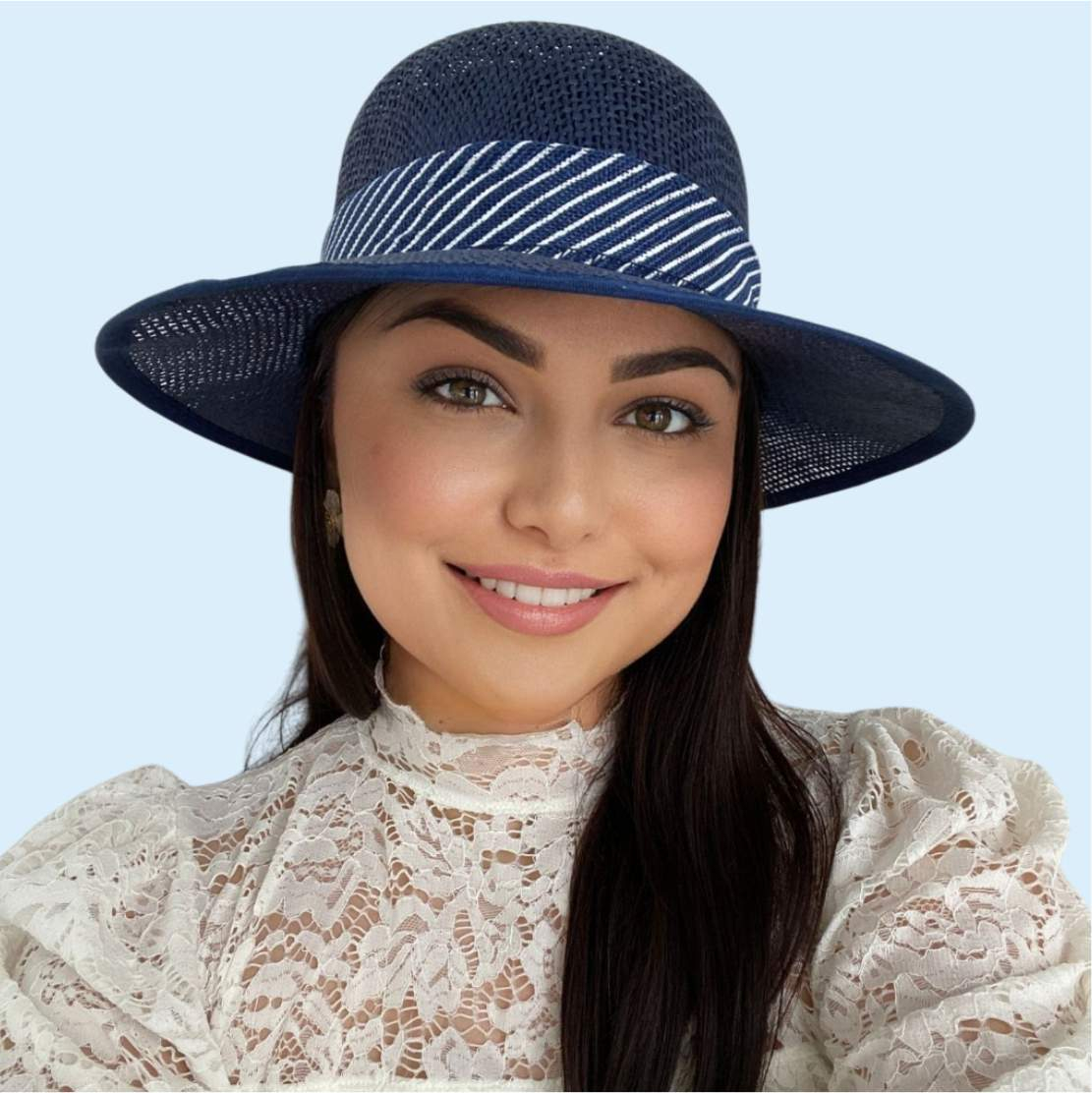 Palarie de soare de lux cu boruri tip sepcuta COCHETTE LUX (BLEUMARIN) - marime unica, reglabila