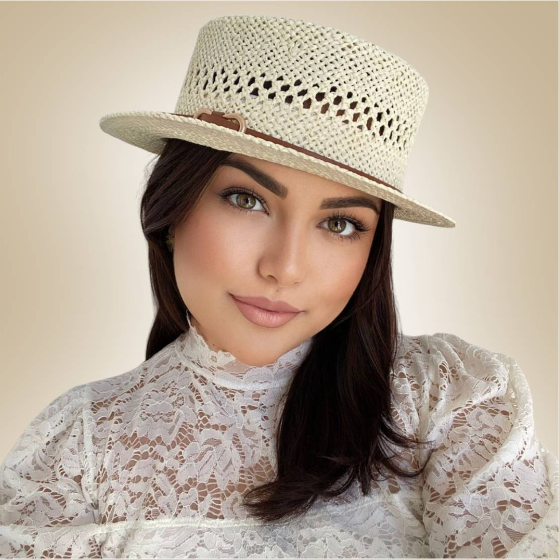 Si tu te poti bucura de o palarie de soare deosebit de eleganta alegand noul model Kalinda Lux, o palarie de vara de un rafinament aparte, diponibila in culori distinse, cu boruri drepte, rotunde si delicate si elegant decor din curelusa de piele cu catarama - un accesoriu deosebit de elegant pentru tinutele de zi sau de vacanta - marime UNICA, reglabila