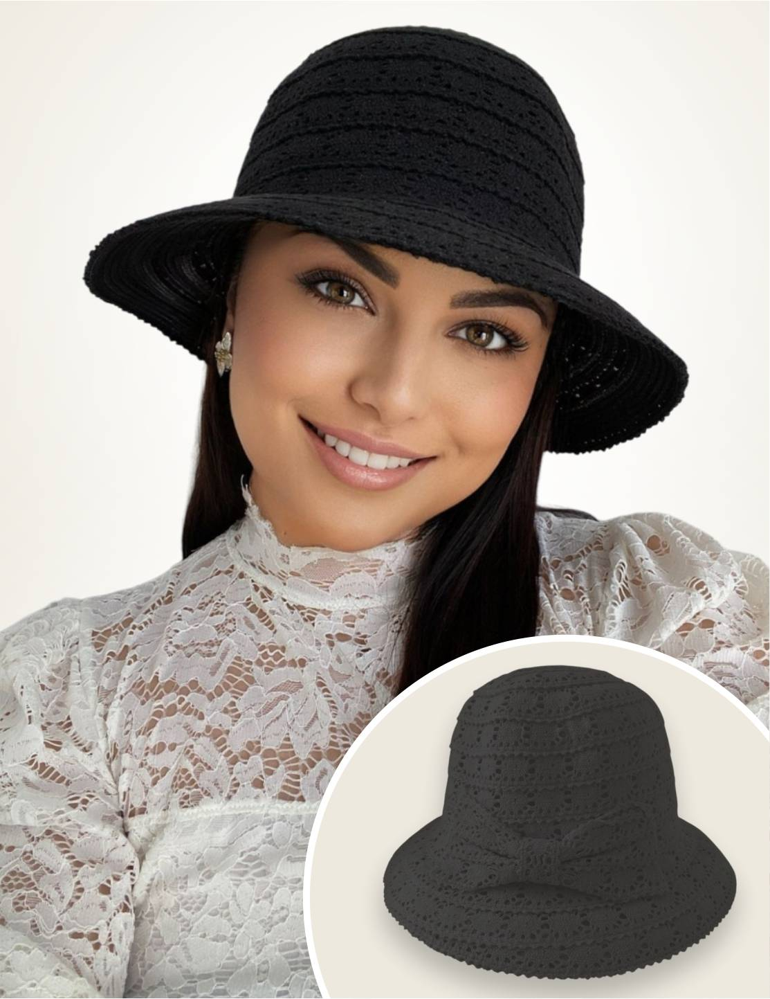 Palarie de soare de lux cu boruri rotunde mici SIDONIA CHIC (NEGRU) - marime unica, reglabila