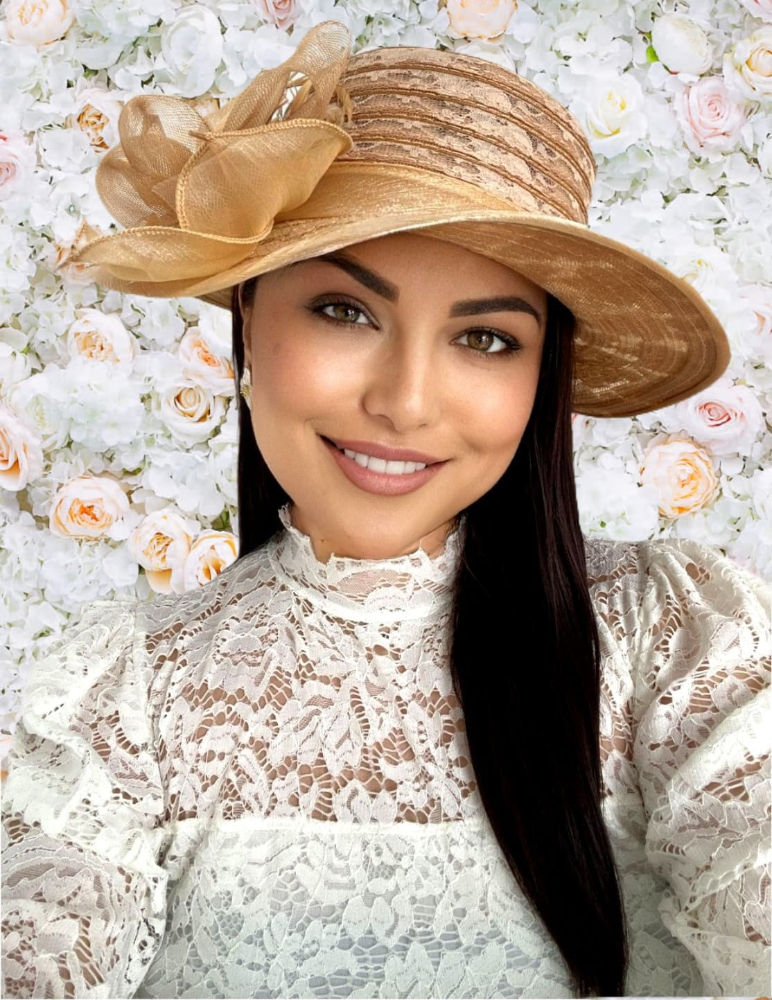 Si tu te poti bucura de o palarie de soare moderna si de calitate alegand noul model Sofia Lux, un model de o eleganta aparte, o palarie de vara de lux cu rafinate boruri rotunde si drepte, margini din satin si panglica asortata cu decor floral luxuriant (detasabil), un accesoriu deosebit de elegant pentru tinutele tale de fiecare zi sau pentru ocazii speciale - marime UNICA, reglabila