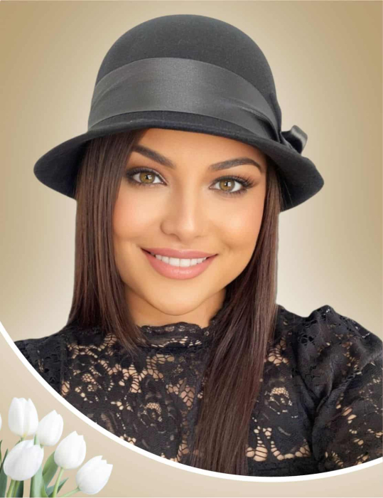 Palarii dama fetru lux cu panglica din satin NOBLESS LUX (12 culori) - marime unica, reglabila