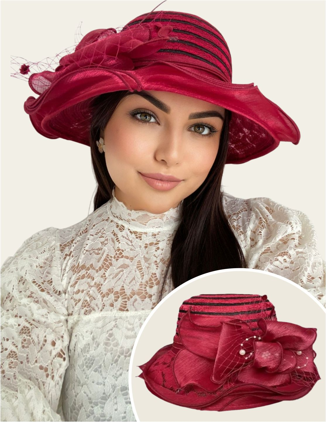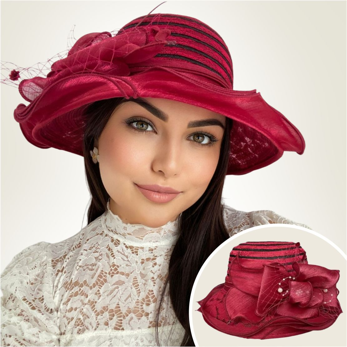 Palarie dama lux din organza cu margini dantelate SPLENDOR LUX (GRENA) - marime unica, reglabila