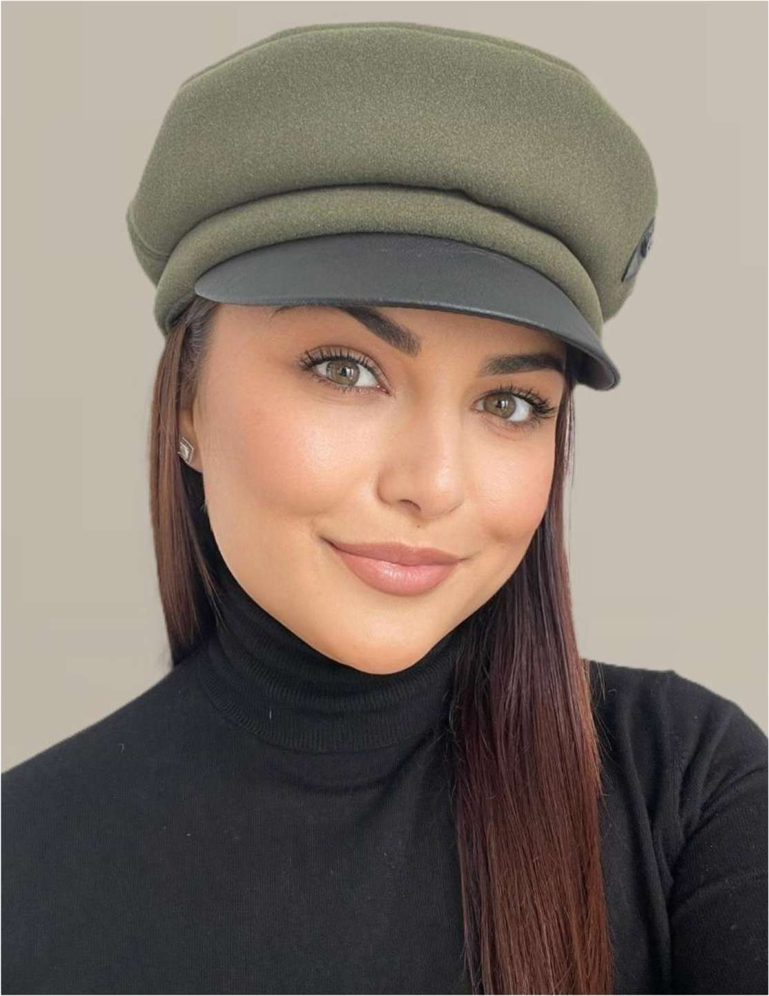 MODEL: sapca eleganta de dama din stofa groasa cu cozoroc din piele ecologica de calitate lux