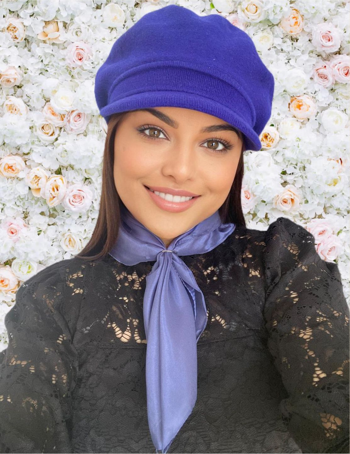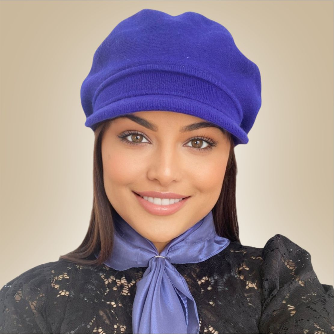 Setul contine 1 sapca eleganta de dama din lana de Angora + 1 esarfa de matase asortata de 60x60 cm