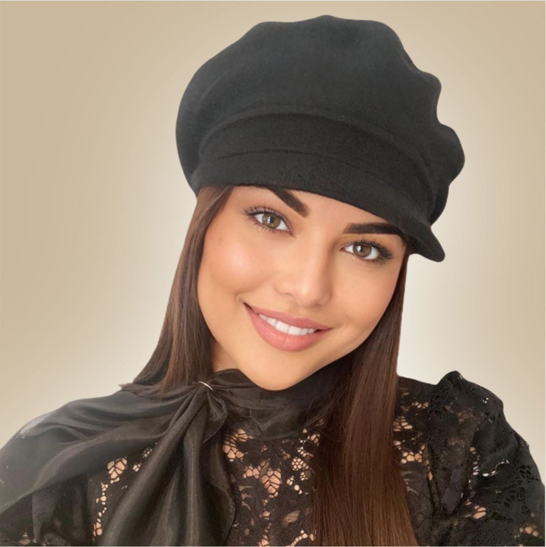 Setul contine 1 sapca eleganta de dama din lana de Angora + 1 esarfa de matase asortata de 60x60 cm