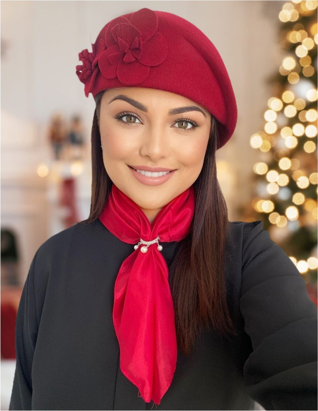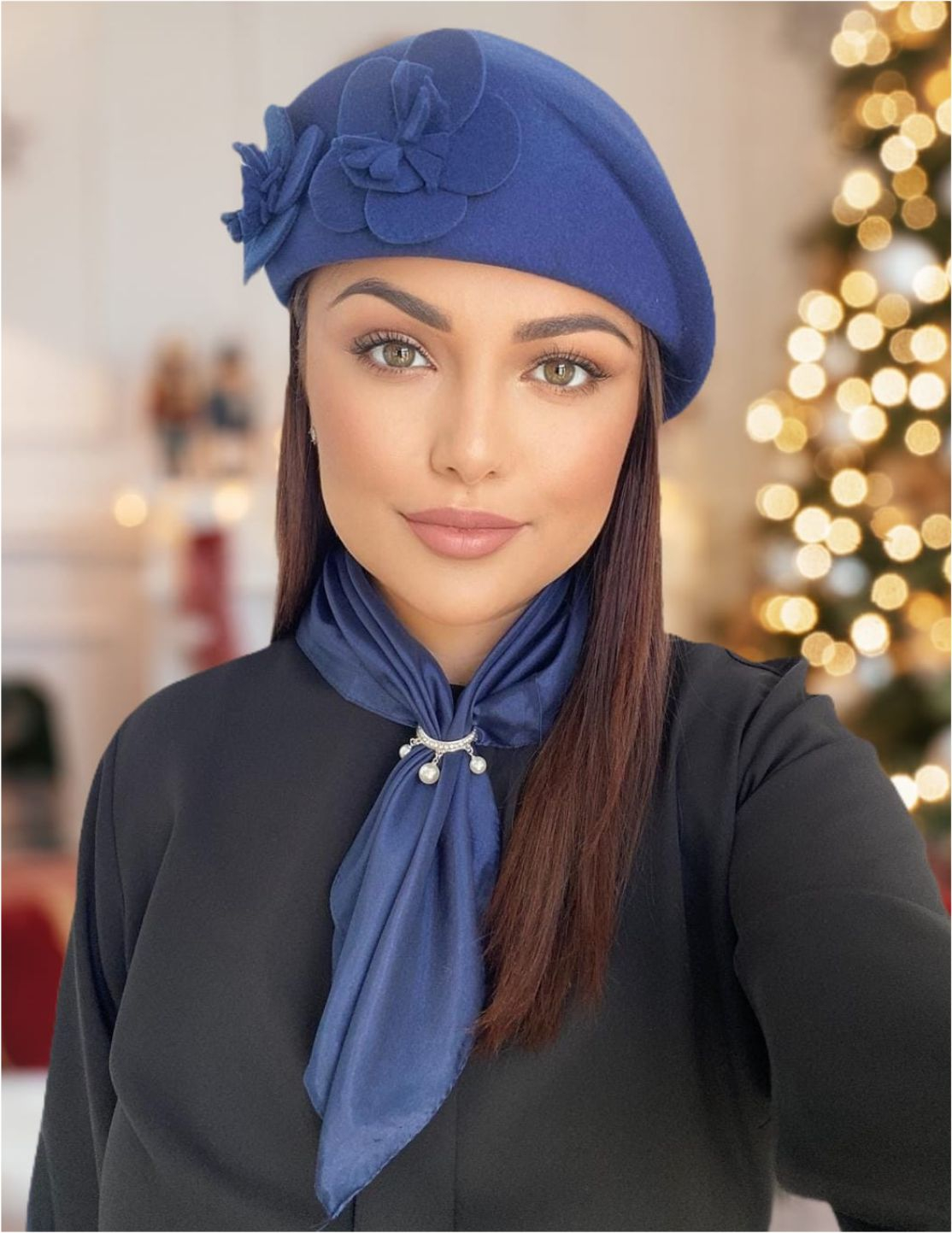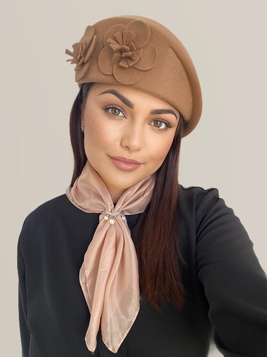Palarii dama toca pe colt REGINA CHIC + esarfa CADOU (15 culori) - marime unica, reglabila