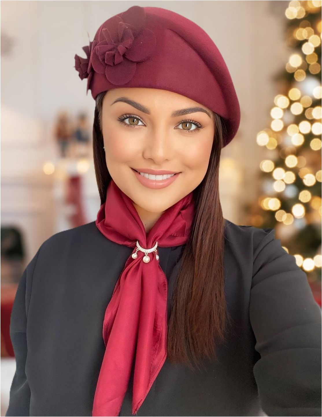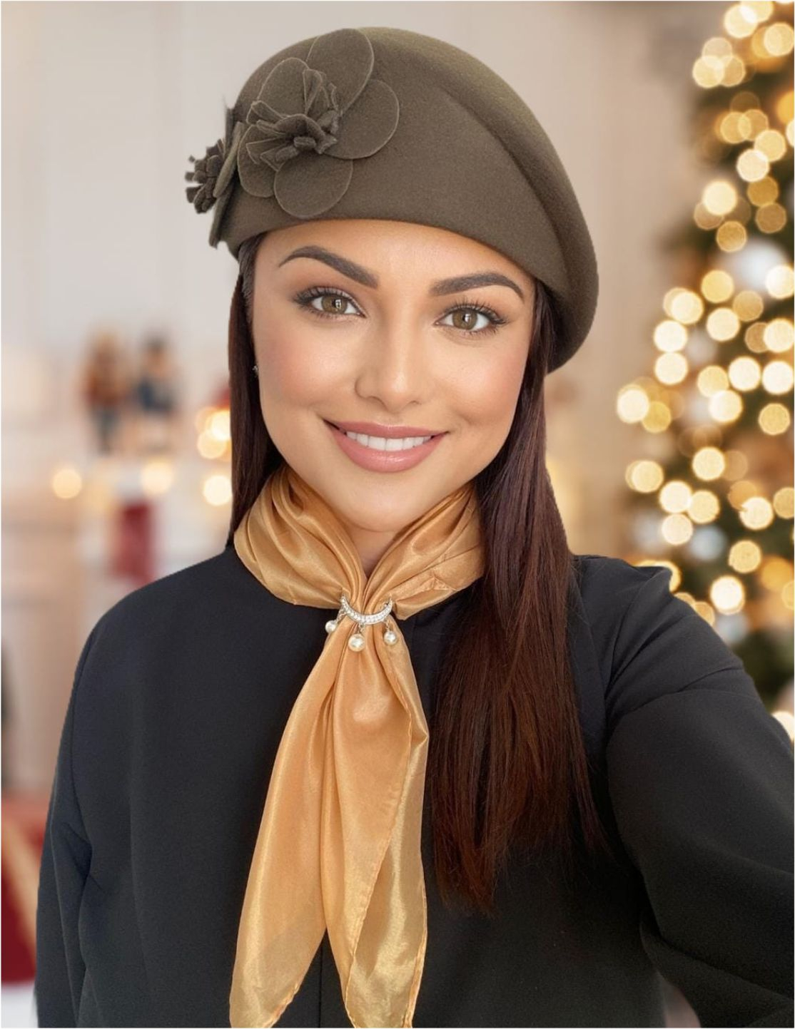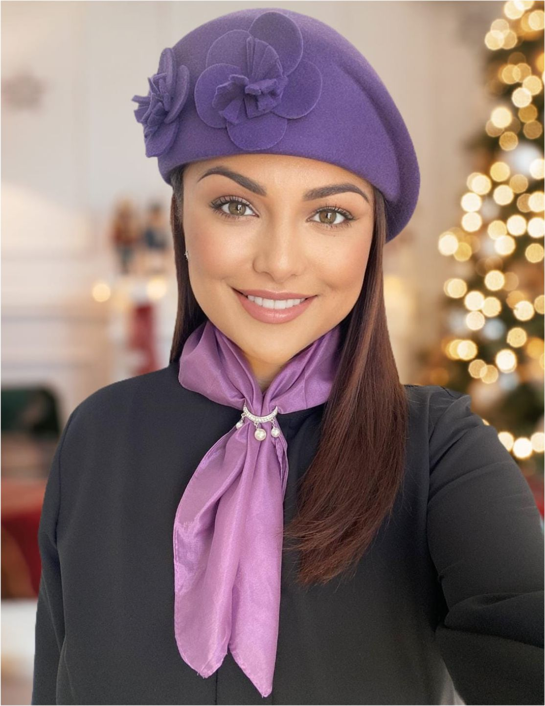 Palarii dama toca pe colt REGINA CHIC + esarfa CADOU (15 culori) - marime unica, reglabila
