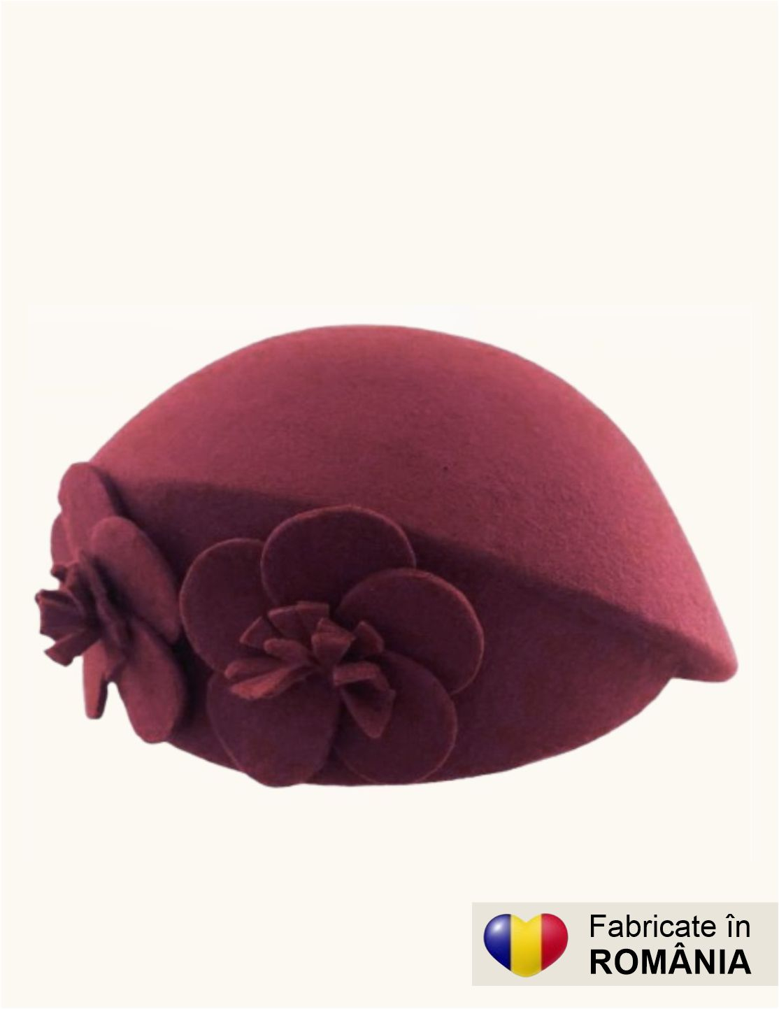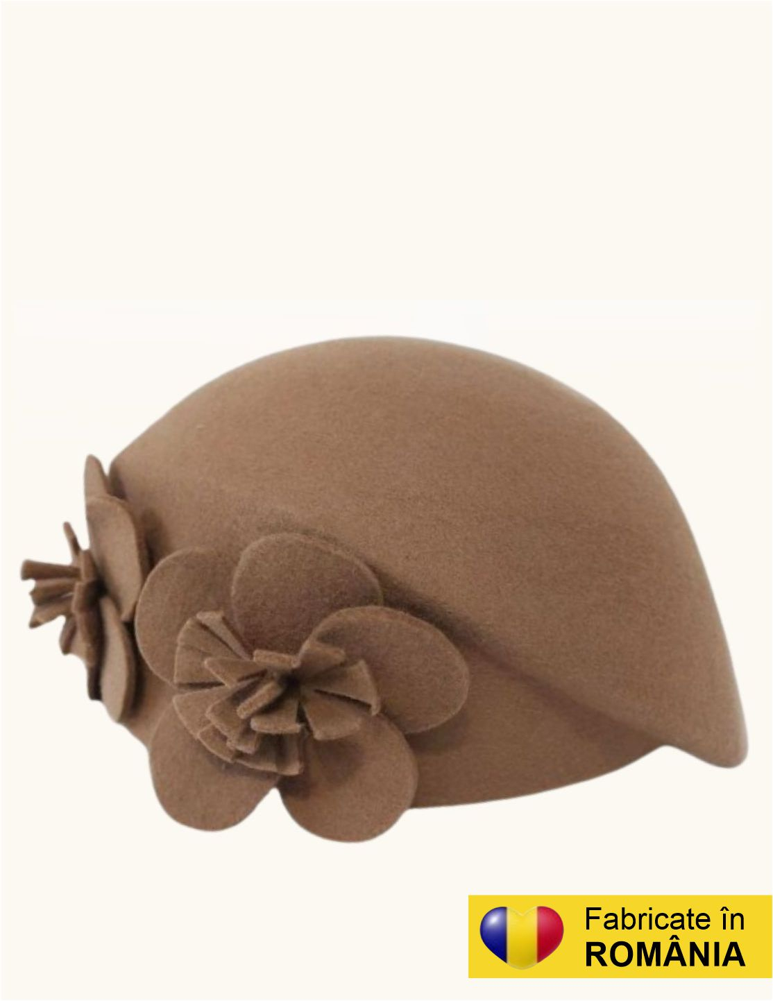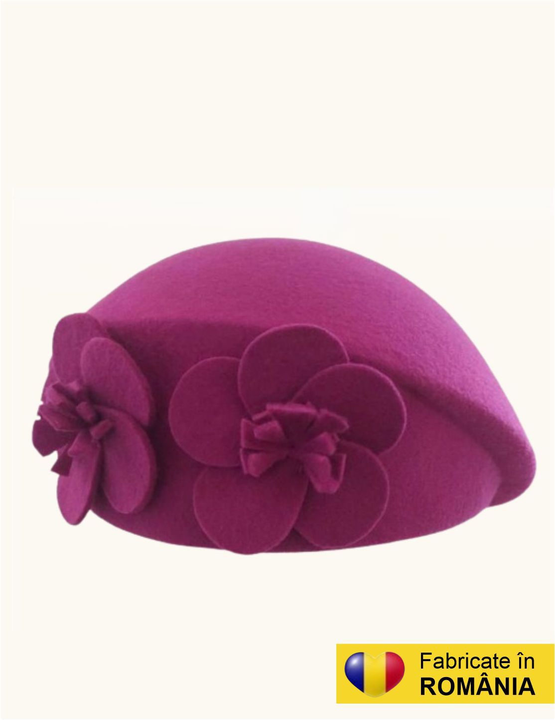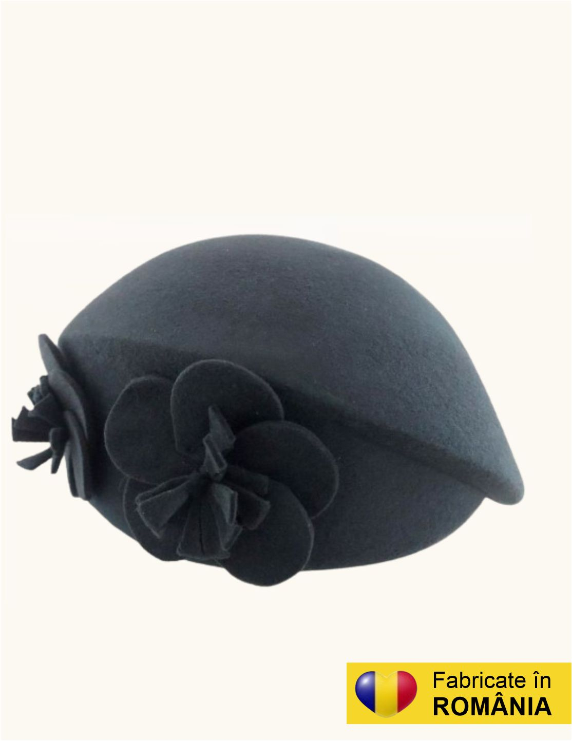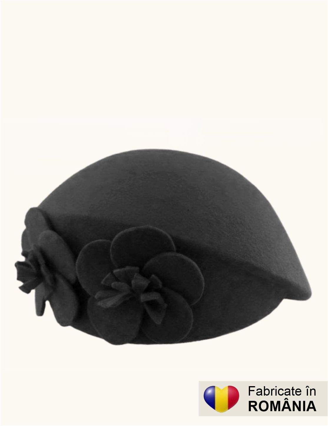 • MODEL: palarie dama tip toca cu croiala moderna pe colt si delicate accesorii florale