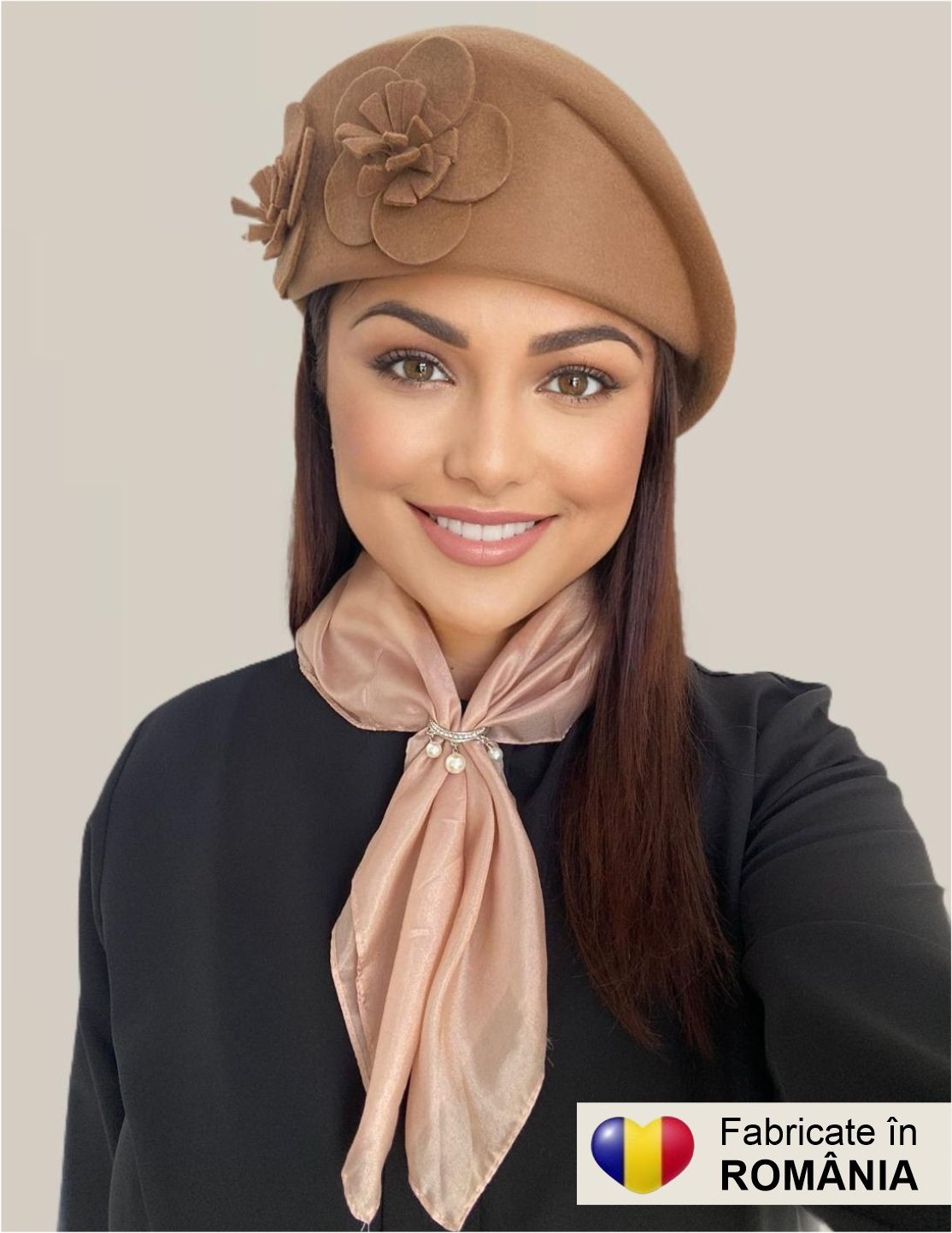 • ACCESORIZARE: palarie eleganta de dama cu decor floral din acelasi material