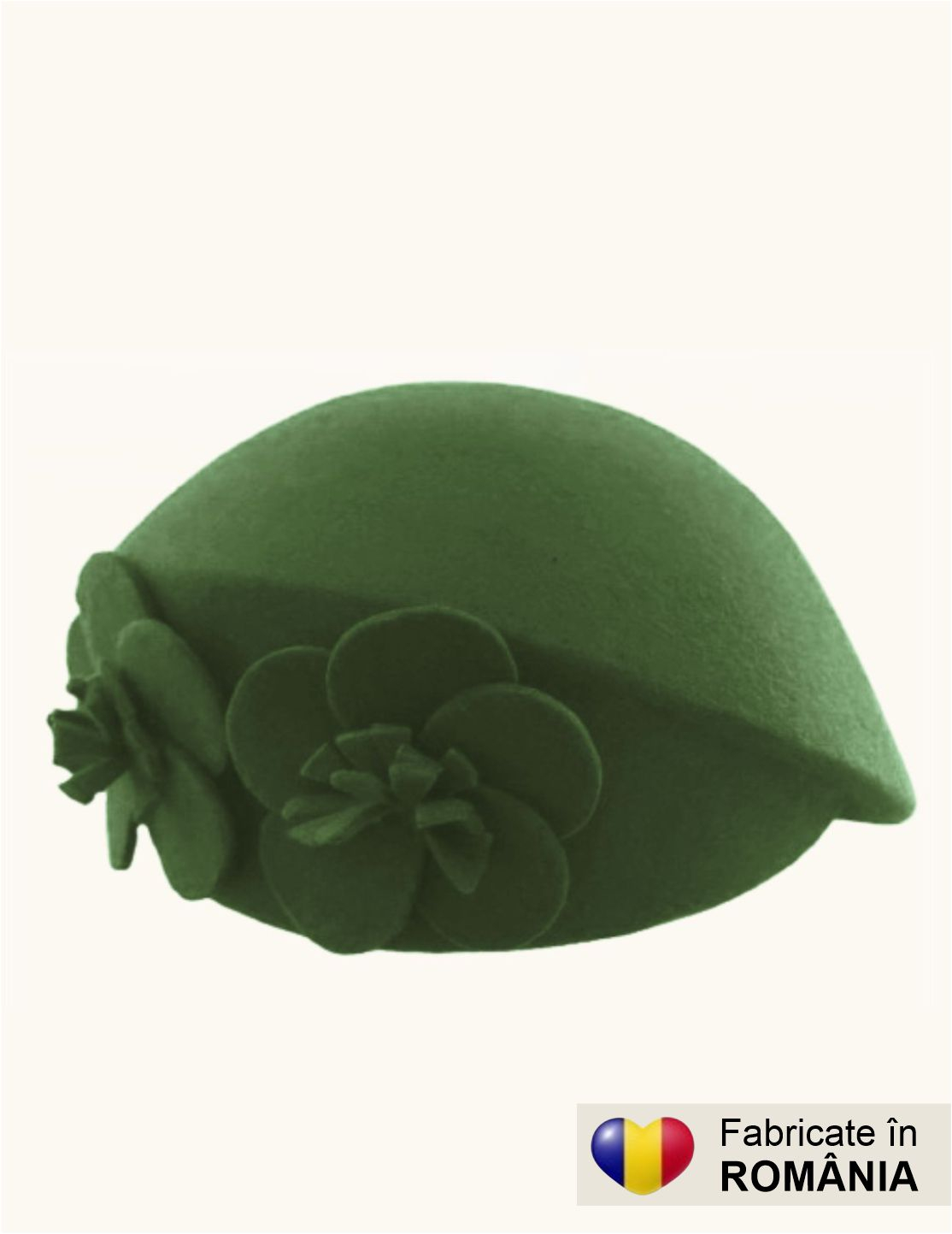 Palarie de dama din fetru lux tip toca REGINA LUX (VERDE aprins) - marime unica, reglabila