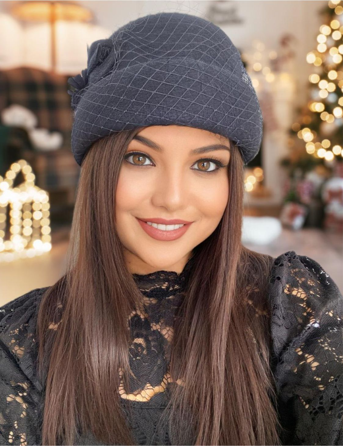 Palarie dama tip toca cu voaleta MAGIC LUX (GRI inchis) - marime unica, reglabila