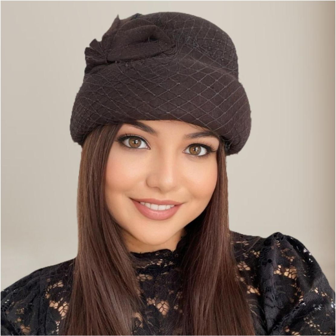 Palarie dama tip toca cu voaleta MAGIC LUX (MARO mahon) - marime unica, reglabila